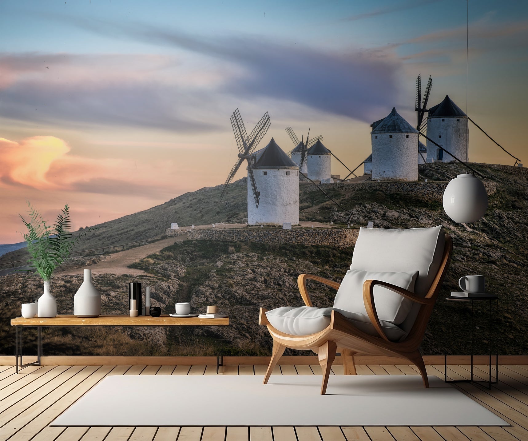 Med måtten 15:1 passar denna tapet perfekt för att skapa en dramatisk fokuspunkt i ditt hem. Låt "Molinos al viento" bli den prydnad som lyfter ditt rum till nya höjder av stil och skönhet.