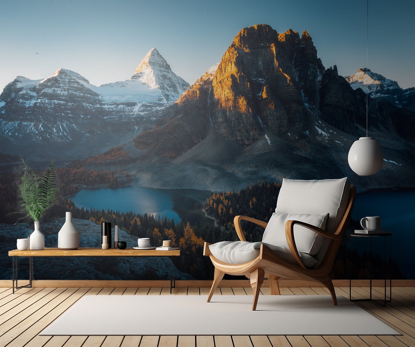 Upptäck de majestätiska bergen, det klara vattnet i sjön och de frodiga träden som skapar en harmonisk och fridfull atmosfär i ditt rum. Med motiv av dimhöljda toppar och snötäckta bergstoppar får du en känsla av lugn och avkoppling varje gång du tittar på din nya vägg.