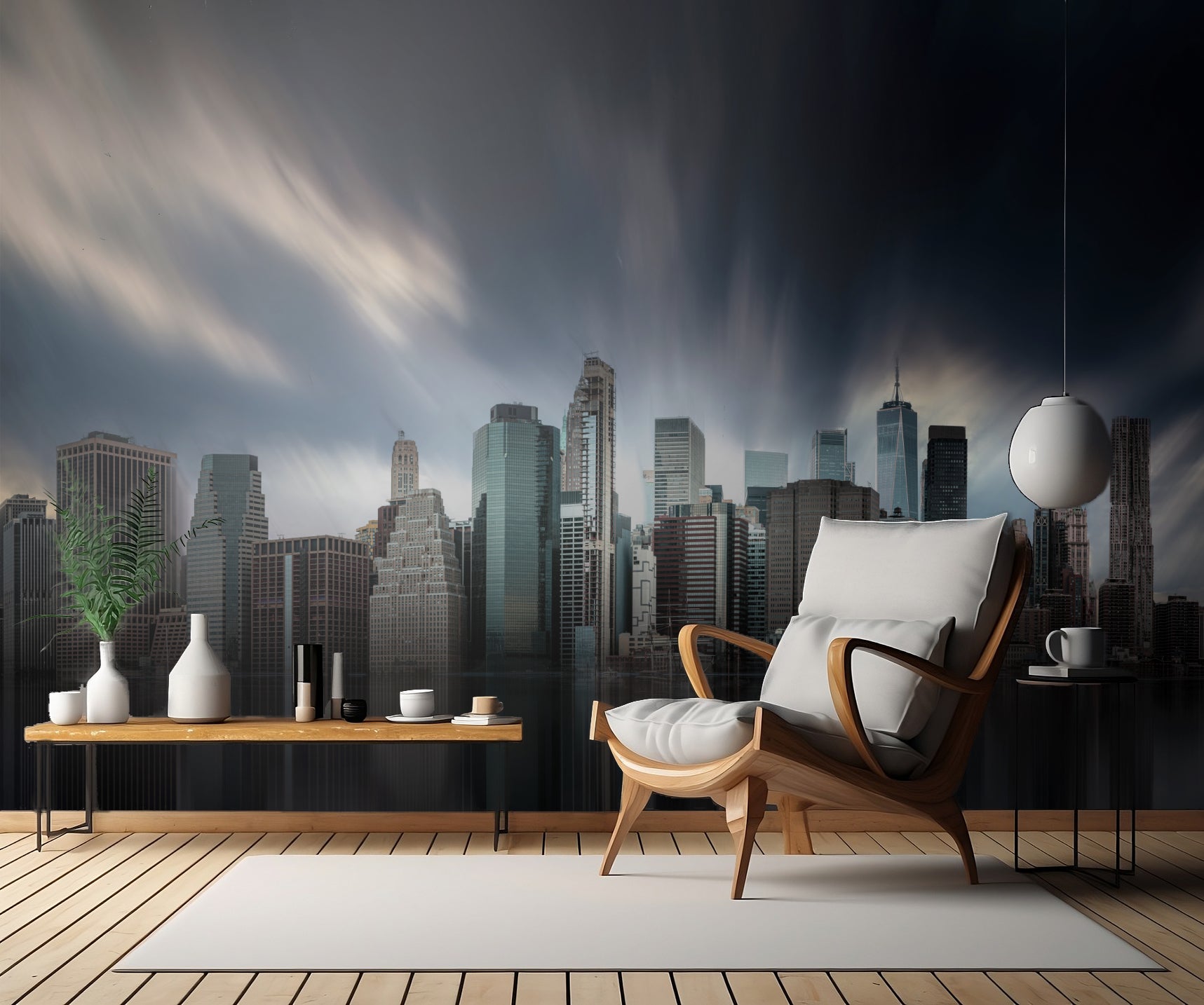 Med en imponerande skyline, stoltserar denna tapet med stadens mest berömda landmärken - från Brooklyn Bridge till Empire State Building. Fånga ögonblickets reflektioner i vattnet, när stadens skyskrapor och torn sträcker sig mot himlen i eleganta tealfärger och turkosblå nyanser.