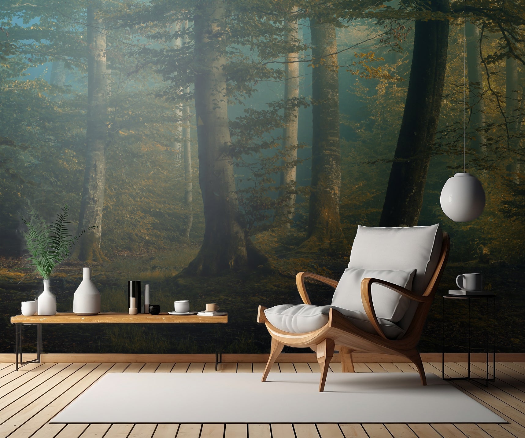 Med denna tapet kan du skapa din alldeles egna skogsmiljö som för tankarna till en härlig sommardag. Känn doften av skogen och låt dig inspireras av dess ändlösa skönhet. "October Colors" ger dig en känsla av att befinna dig mitt i naturens underbara panorama.