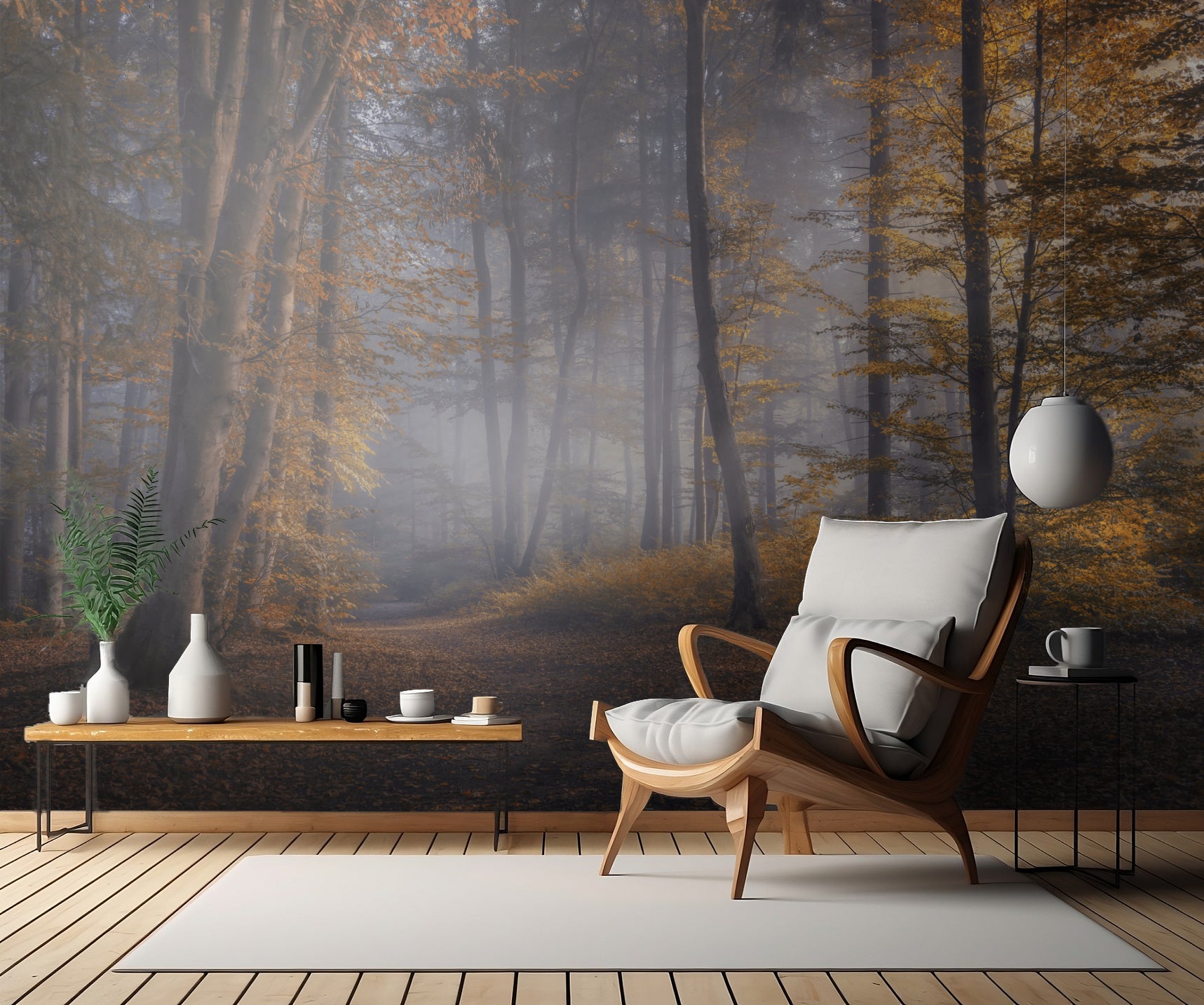 Ge ditt rum en unik touch med denna vackra tapet. Låt "October Days" föra in naturens magi i ditt hem och skapa en mysig och rofylld miljö att trivas i. Med denna tapet får du en inbjudande känsla av skogens skönhet direkt på din vägg.