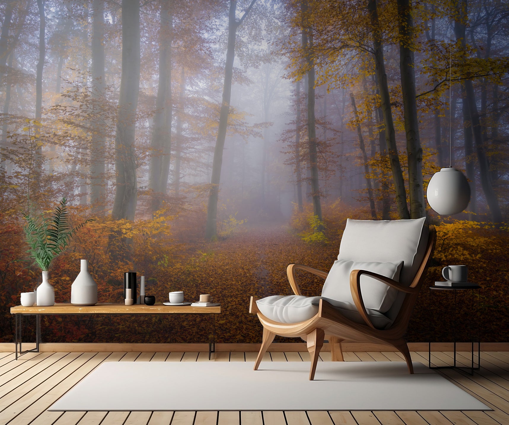 Ge ditt rum en touch av höstens alla härliga nyanser med denna drömlika tapet.