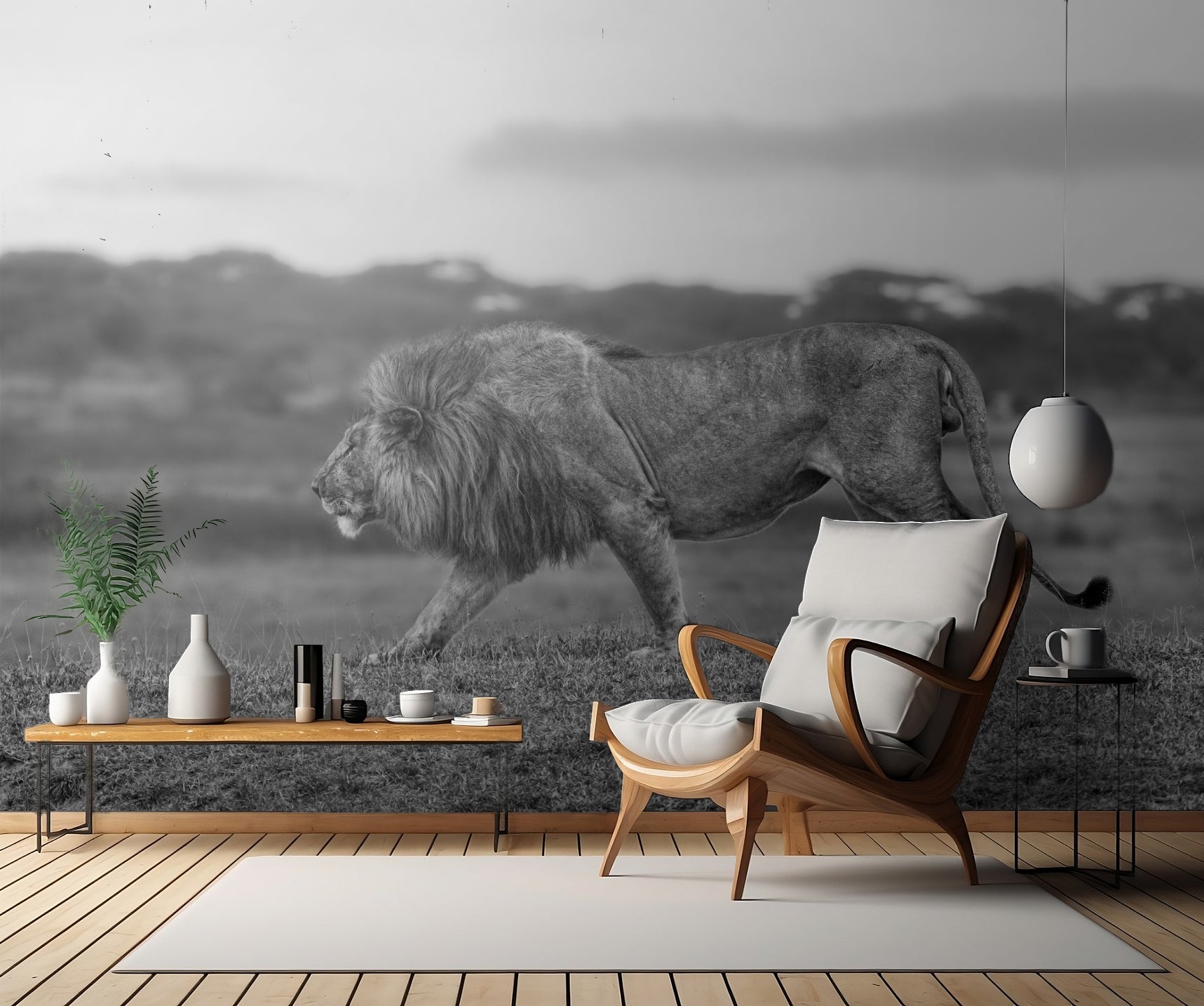 Varje detalj på tapeten är en hyllning till Afrikas vilda djurliv och savannens oändliga utrymmen. Du kommer att förloras i de livfulla ögonen på kungen själv, lejonet, och förundras över hans styrka och självständighet. Med "Old King" väggtapeten kan du låta ditt rum förvandlas till en exotisk oas, där du kan känna den oförstörda naturens pulserande energi.