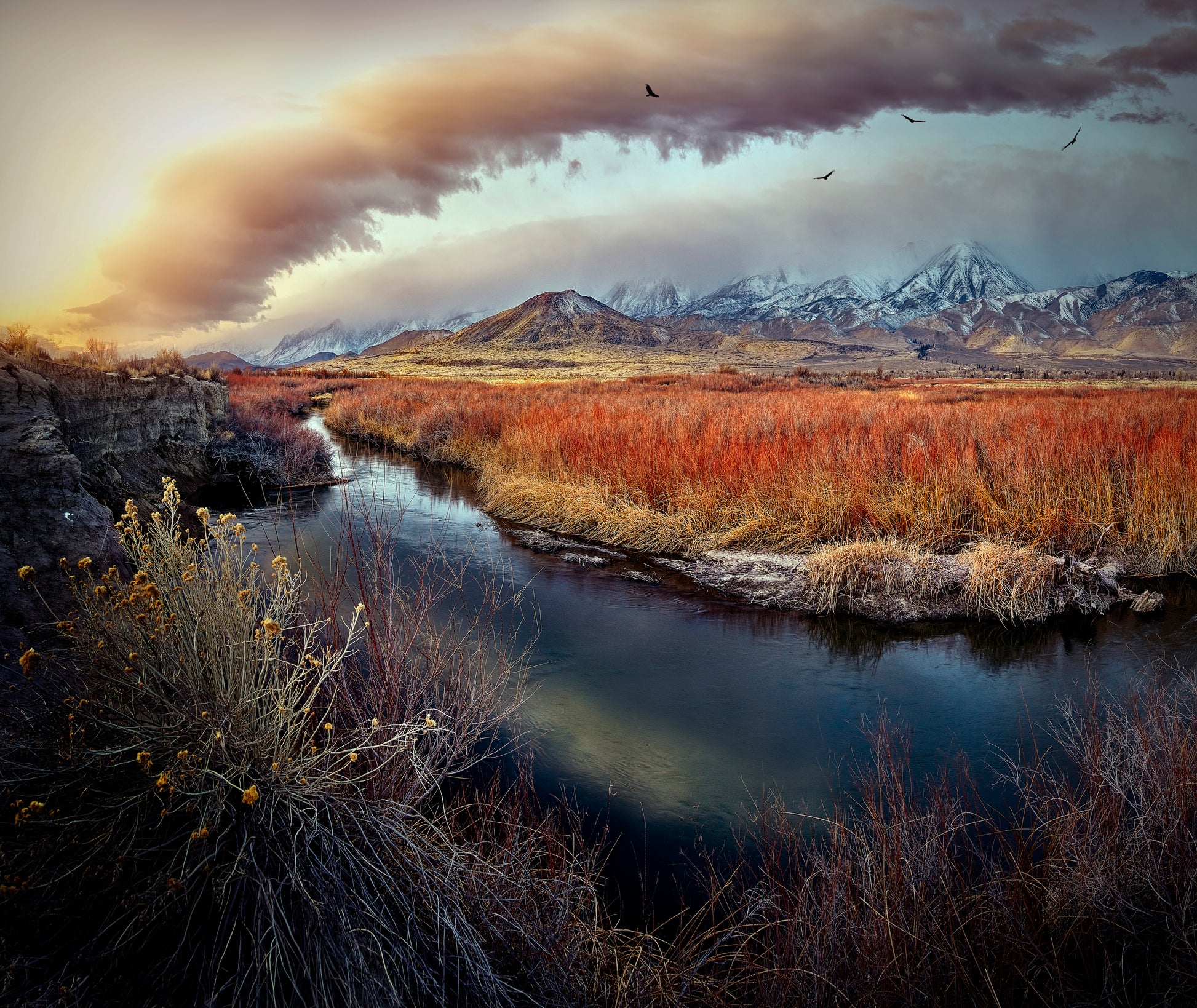 Vackra "Owens River at Sunrise" är en fantastisk väggtapet som tar dig med till en stilla morgon vid Owens River i Sierra Nevada Mountains.