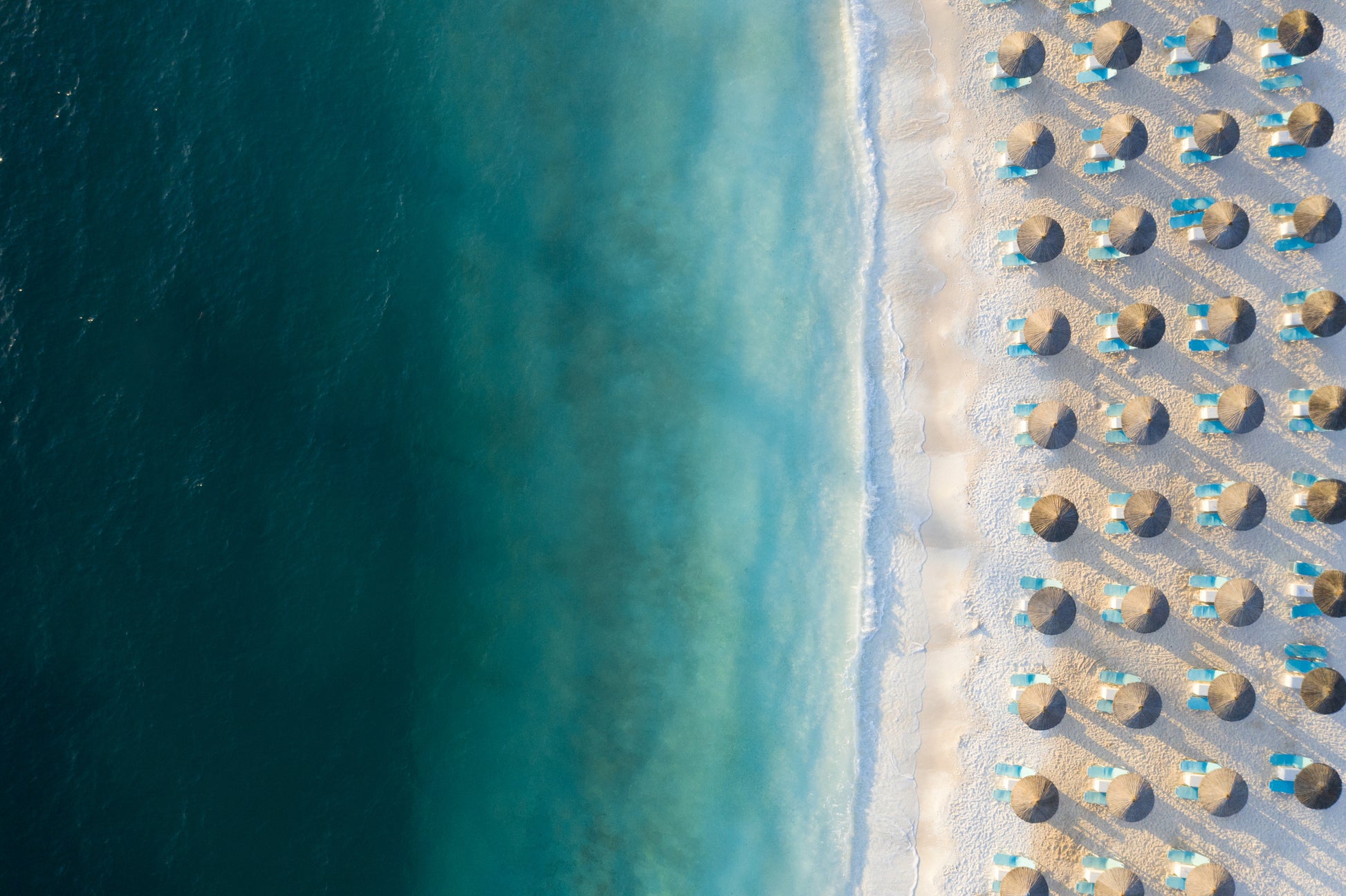Med motiv av solstolar, parasoll och det skimrande vattnet i bakgrunden ger denna tapet en känsla av semester året om. Oavsett om du längtar efter en avkopplande dag vid stranden eller vill skapa en inbjudande resort-atmosfär i ditt hem, så är "Perfect" det perfekta valet för dig.