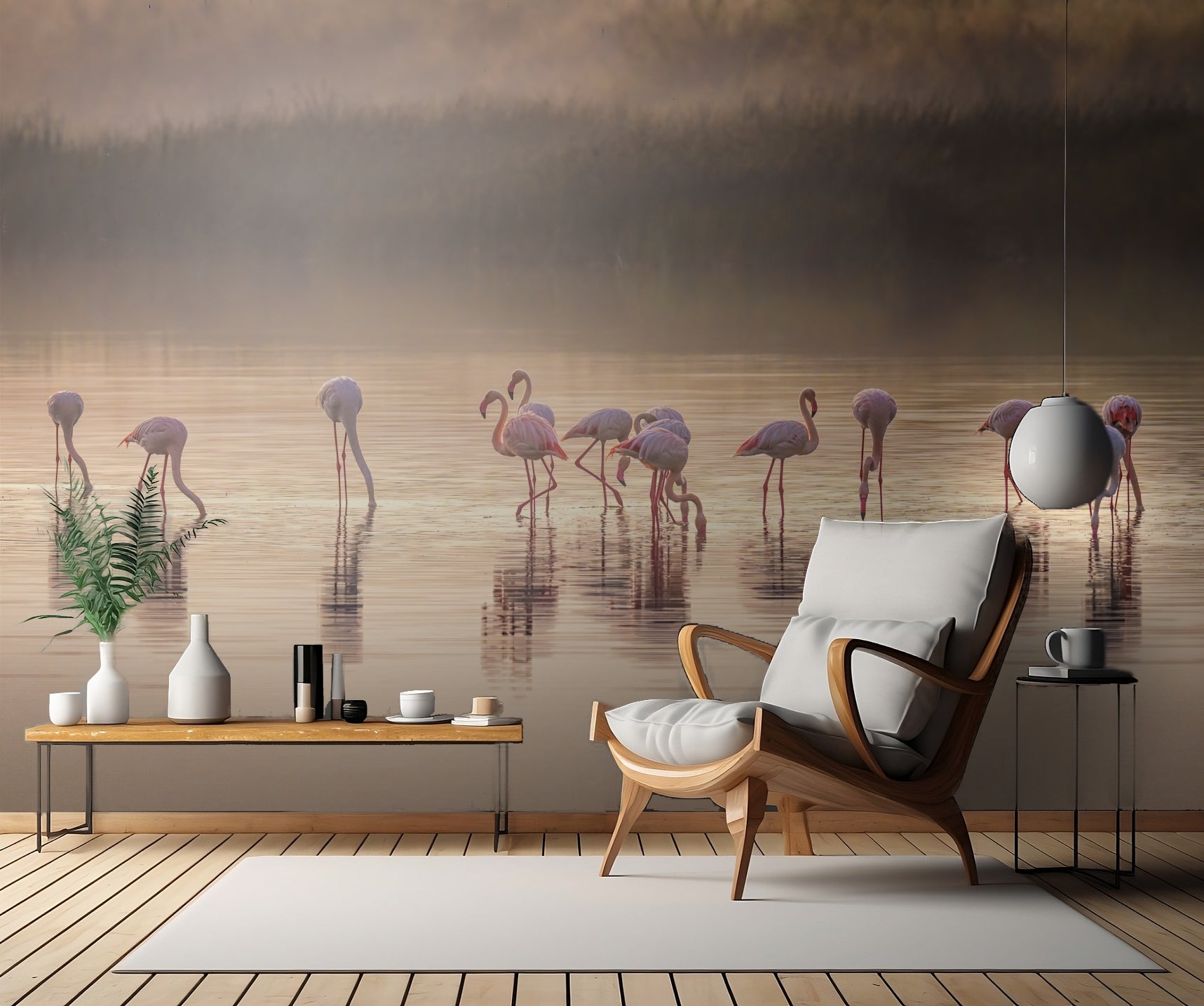 Ta med naturen och vildlivet direkt in i ditt hem med denna fantastiska väggtapet, skapad av den talangfulla konstnären Jeffrey C. Sink. Inspirerad av Monets konstverk har denna tapet fångat det vackra landskapet i Tanzania med sina rosa flamingos som stolt poserar vid vattnet.