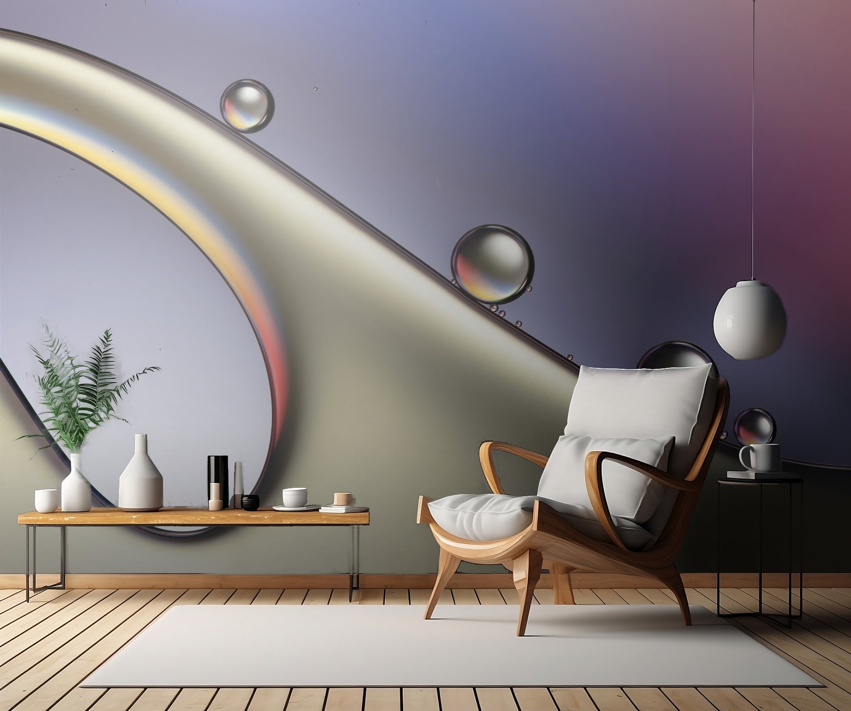 Förundras över de vackra cirkelformerna och de mjuka vattenkasten som smälter samman i en förtrollande symfoni. Med varje dropp som dansar på ytan förvandlas rummet till en drömliknande oas. Väggtapeten förkroppsligar en perfekt balans mellan olja och vatten, där skönhet och mystik kolliderar med enastående konstnärlighet.