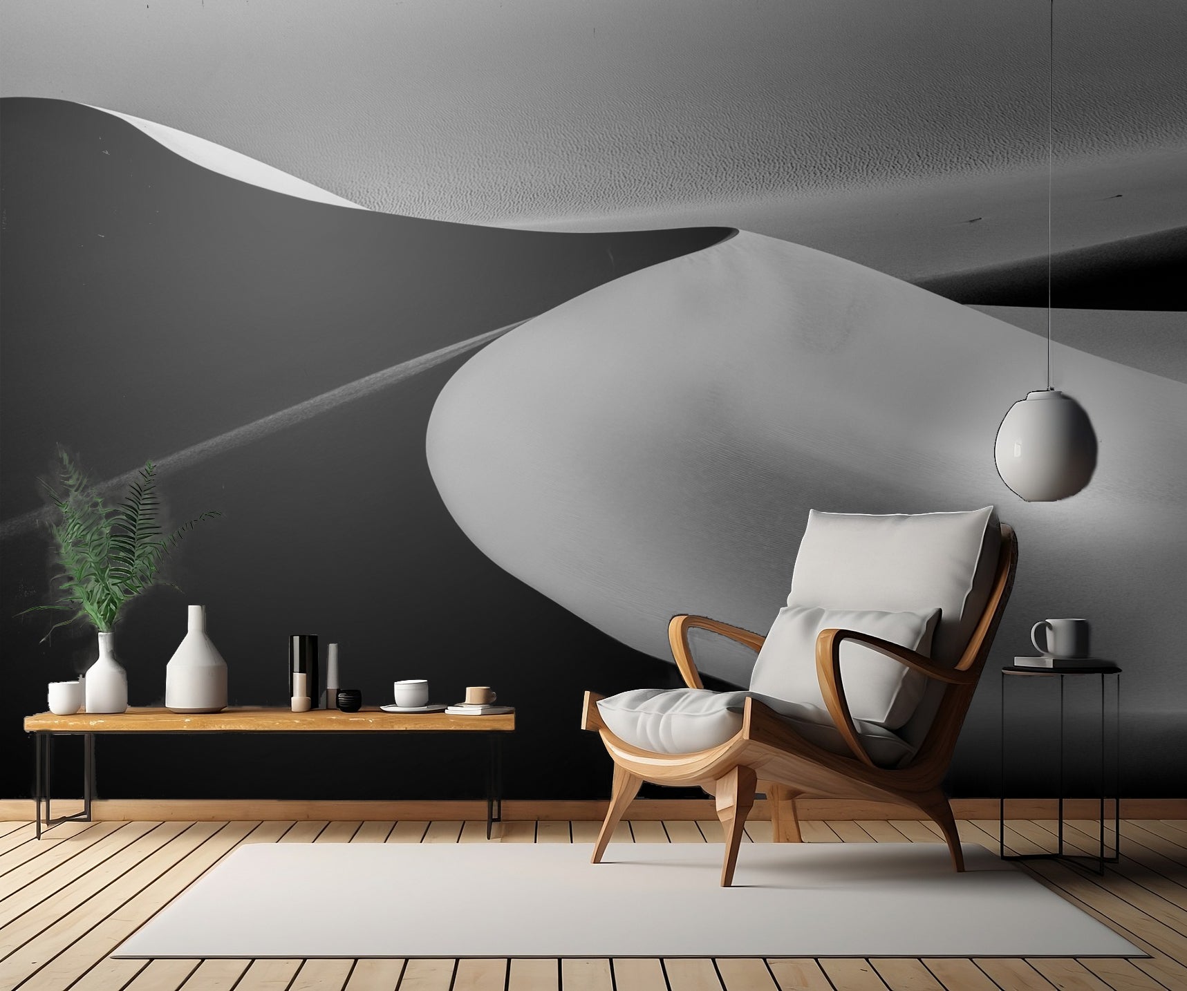 Med inspiration från sanddyner blir denna tapet ett perfekt val för dig som uppskattar enkelhet och minimalism. Den minimalistiska designen skapar en lugn och avslappnad atmosfär i ditt hem. "Sand Dunes" står också ut med sitt strama landskap som ger en effekt av abstraktion och skönhet.