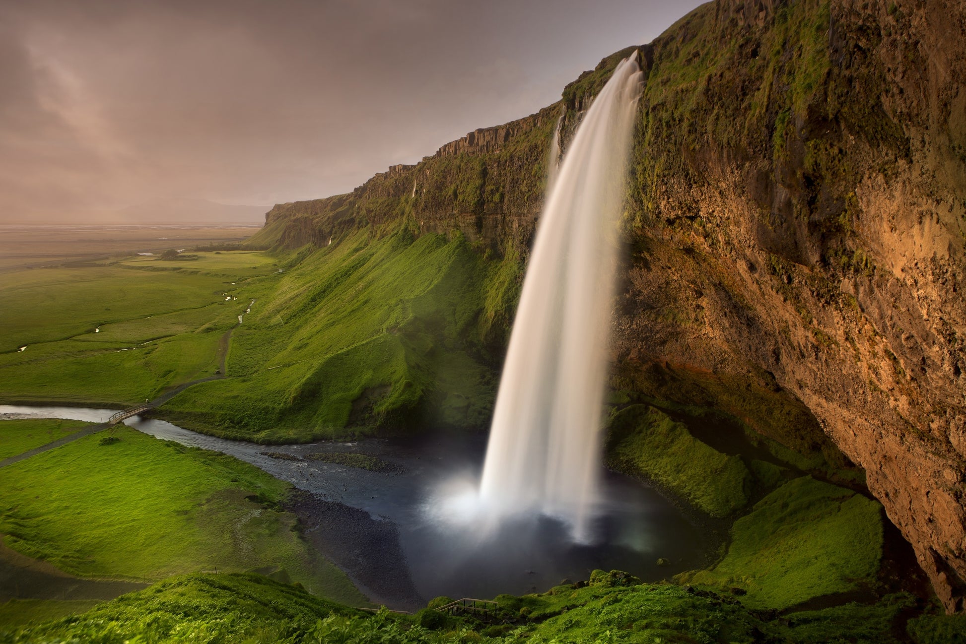Förvandla ditt rum till en naturlig oas med väggtapeten "Seljalandsfoss" skapad av Nicolas Schumacher. Denna vackra tapet fångar den magnifika Seljalandsfoss-vattenfallet i Island med dess mjuka, silkeslena vattenström som flyter ner från klipporna.