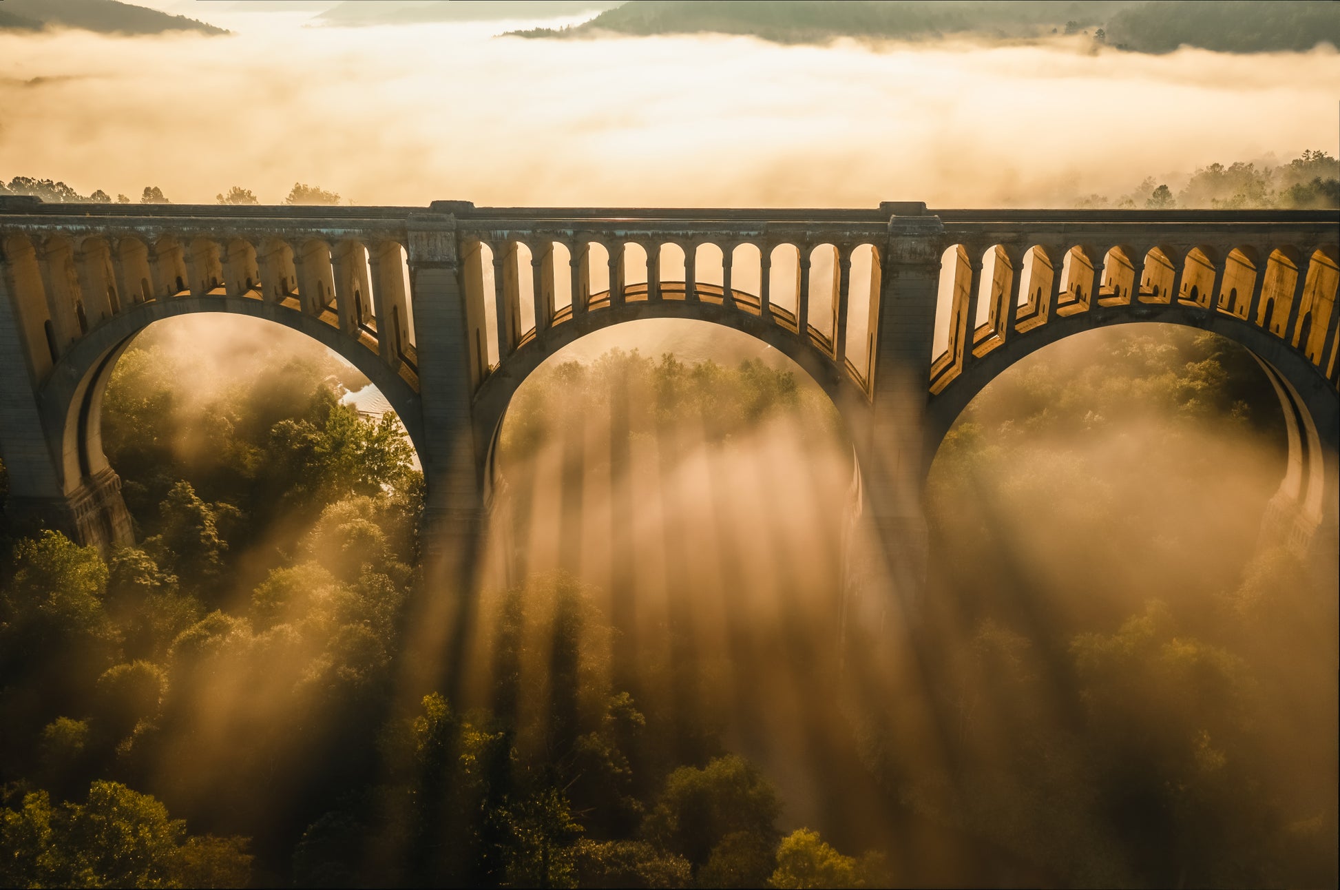 Med motiv av gamla bågar och broar ger tapeten en känsla av mystik och historia. Den lugna och drömlika känslan som "Shape of Light" förmedlar kommer att förvandla ditt rum till en fridfull oas där du kan koppla av och drömma dig bort.