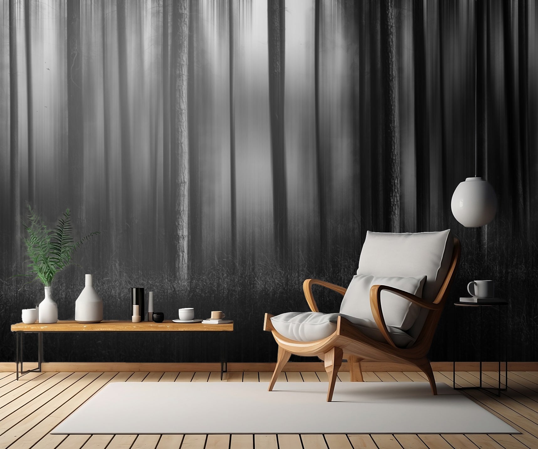 Låt naturen flytta in i ditt hem med vår unika väggtapet "Spring 2021" skapad av den talangfulla designern Isam Telhami. Tapeten fångar skönheten i en skogsmiljö med sina svarta och vita nyanser som skapar en känsla av lugn och harmoni.
