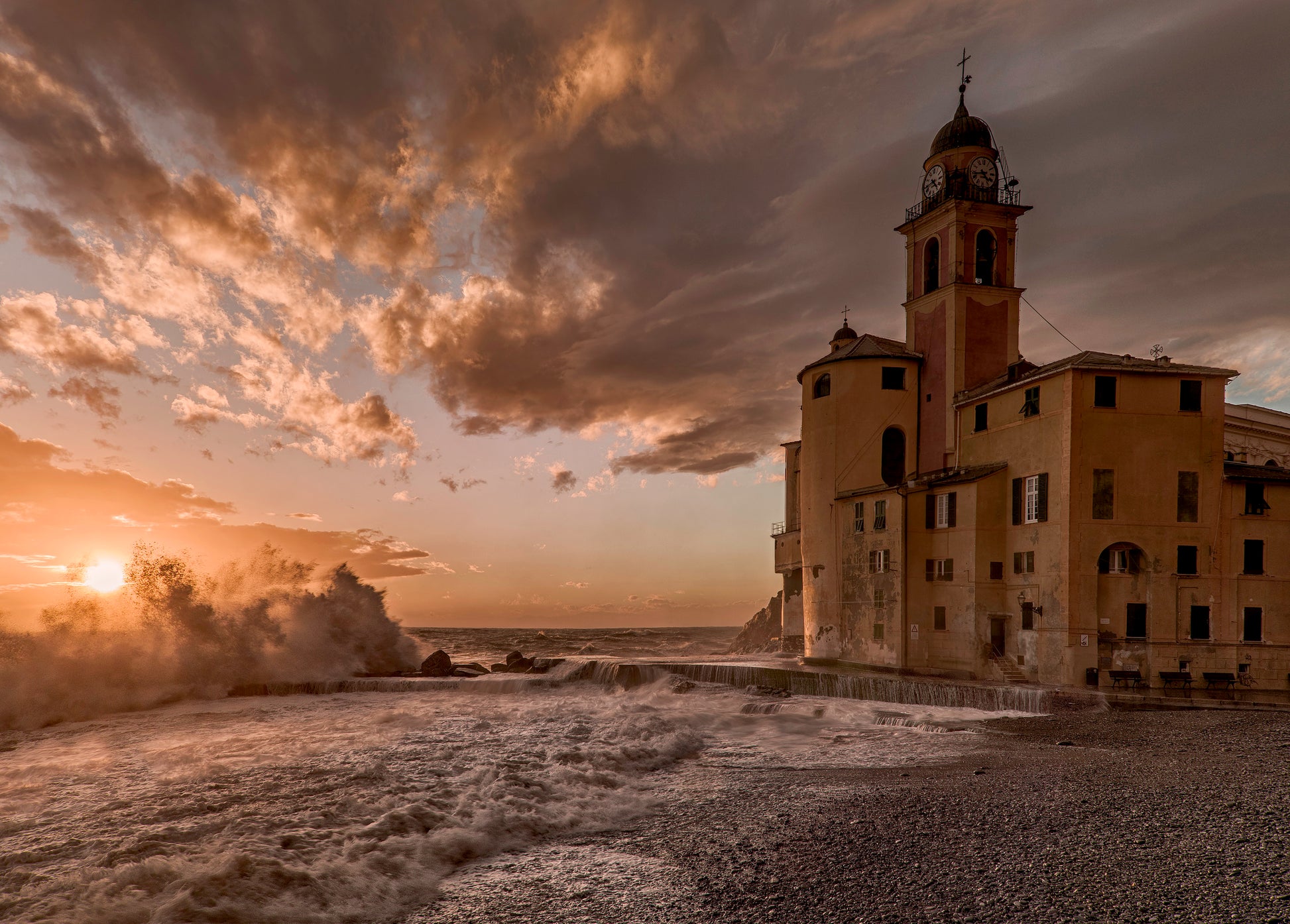 Tapeten fångar perfekt den unika kombinationen av en mäktig kust och en enkel kapell i Camogli. Detta ger en perfekt balans mellan naturens skönhet och den andliga kraften i den kristna symboliken.