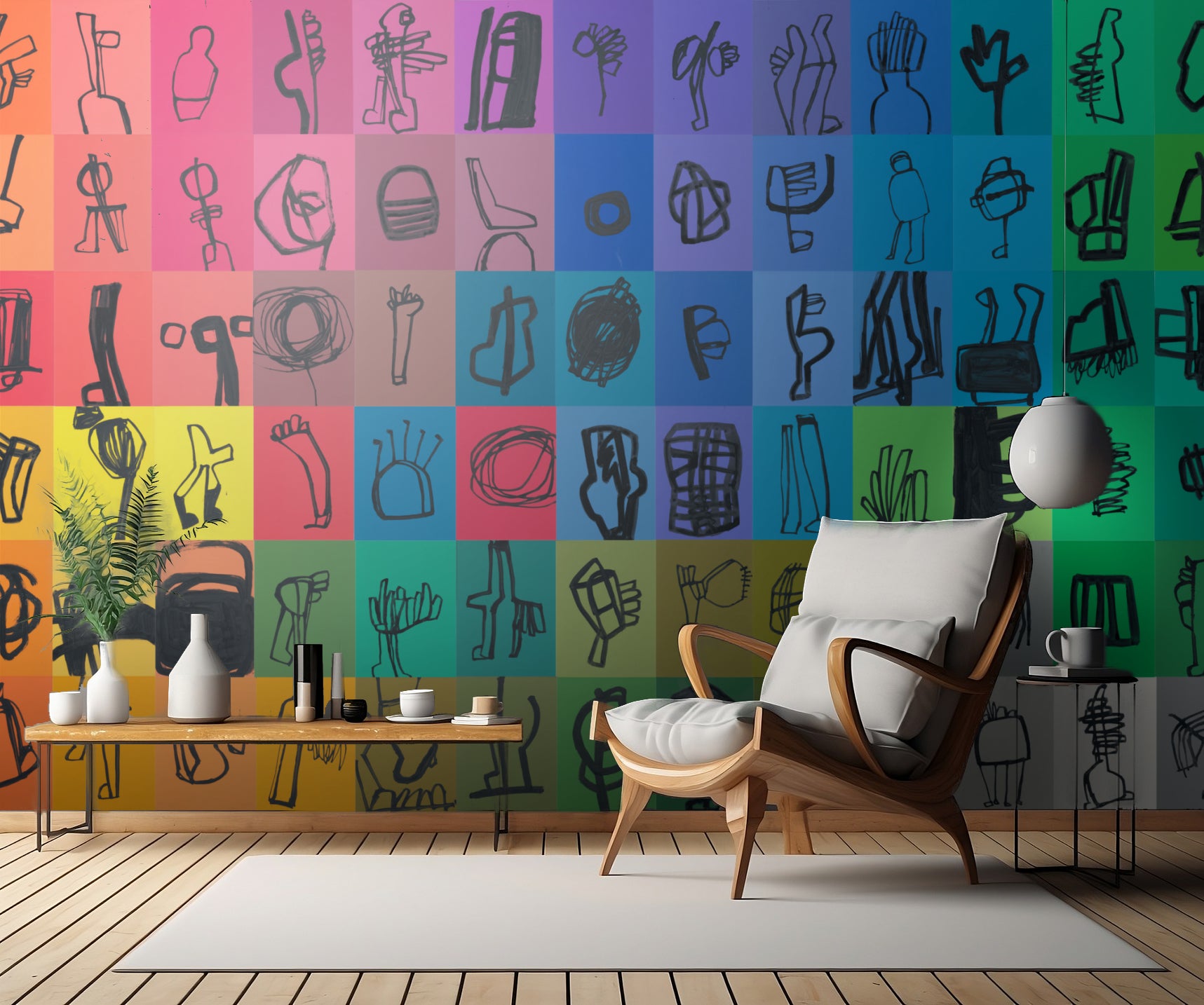 Med en hög nyckelkontrast och en mix av olika färger är "Symbols" idealisk för den som söker en livlig och energisk atmosfär. Ge ditt rum en touch av modernitet och stil med denna tapet som kommer att få dina gäster att imponeras.