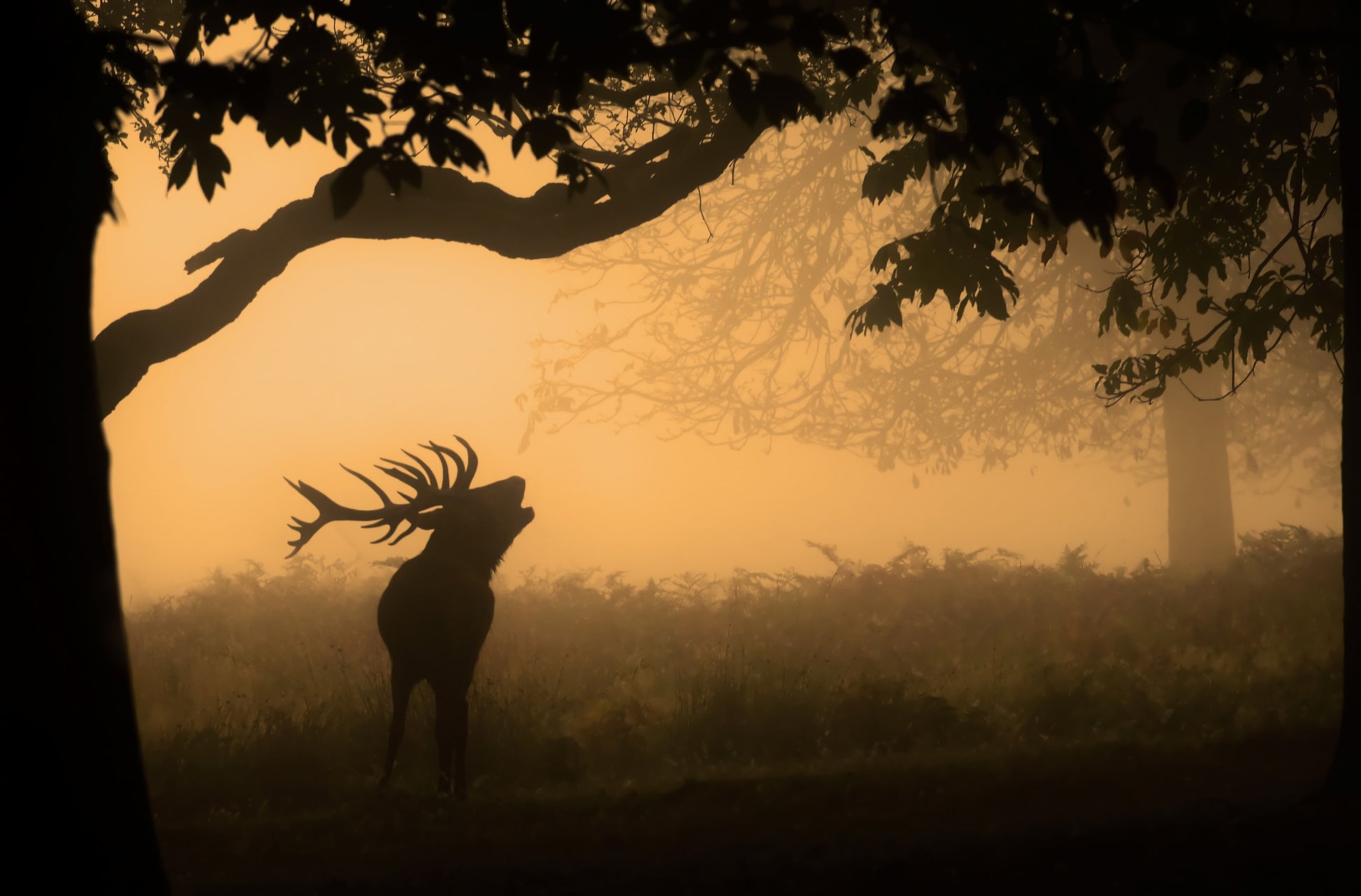Den konstnärligt gestaltade designen av Radojica Jevric fotorax fångar ögonblicket då hjortarna samlas och kommunikerar med varandra i skogen. Den orangea dimman och siluetterna av träden ger en drömlik känsla av att vara mitt i naturens vildmark.