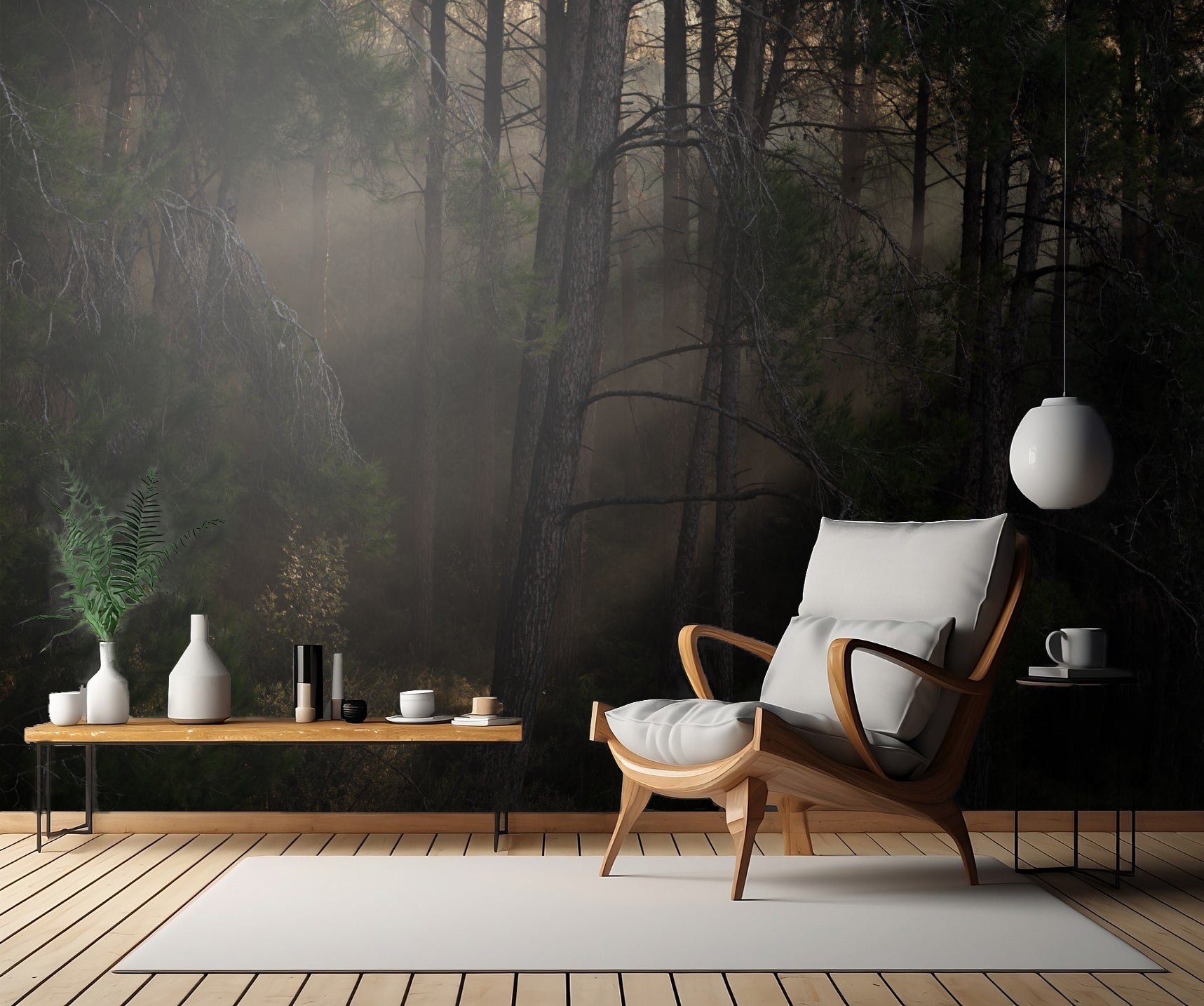 "The Magic Wood" är en perfekt kombination av ett dunkelt landskap och trädstammar som ger en utstickande och förförisk atmosfär till ditt rum. Med dess låga nyckelfärgsättning skapar denna tapet en illusion av att vara djupt inne i skogen, omgiven av träd och naturens skönhet.