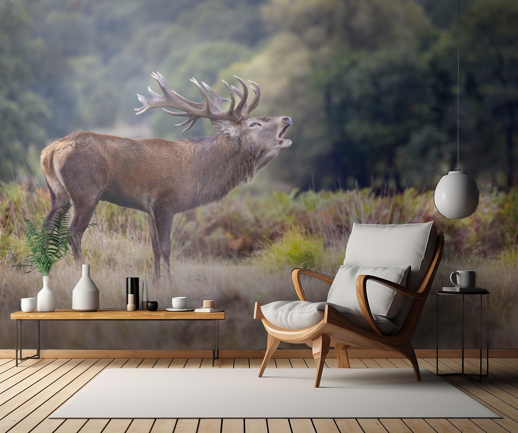 Föreställ dig en fantastisk scen från skogen, där en majestätisk hjort står och skriker ut sin sång. Med väggtapeten "The scream of the deer" kan du föra naturens vilda och vackra atmosfär in i ditt hem. Skapad av den talangfulla konstnären Marco Redaelli, fångar denna tapet verkligen känslan av skogens djur och dess kraftfulla närvaro. Med dess harmoniska färgpalett och detaljerade design blir denna tapet en imponerande fokuspunkt i vilket rum som helst. Låt dig inspireras av skogens mystik och låt "The scream of the deer" bli en del av ditt hem!
