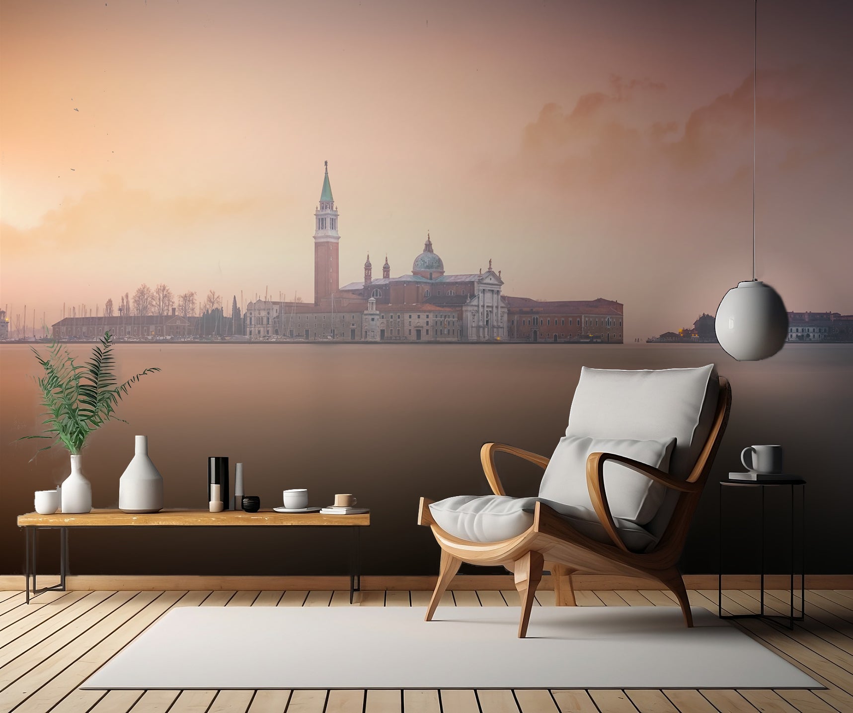 Den unika kombinationen av rosa, orange och vinterlandskap ger en unik touch till ditt rum. Varje detalj i denna tapet är noggrant utformad för att ge en autentisk känsla av Venedigs charm och skapa en atmosfär av tidlös skönhet.
