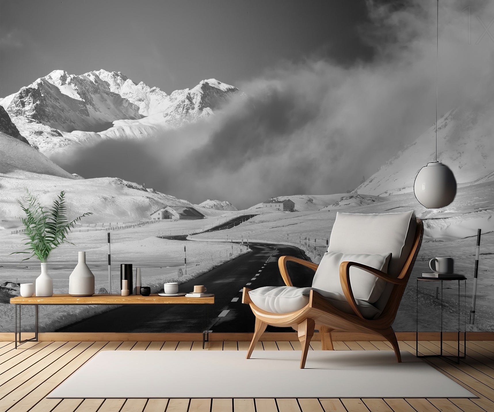 Välkommen till den förunderliga världen av "Venturing into the unknown" - en väggtapet skapad av den talangfulla konstnären Alfredo Costanzo. Denna tapet tar med dig på en resa genom kontraster och vägar, byggnader och hus som försvinner i dimman och röken.