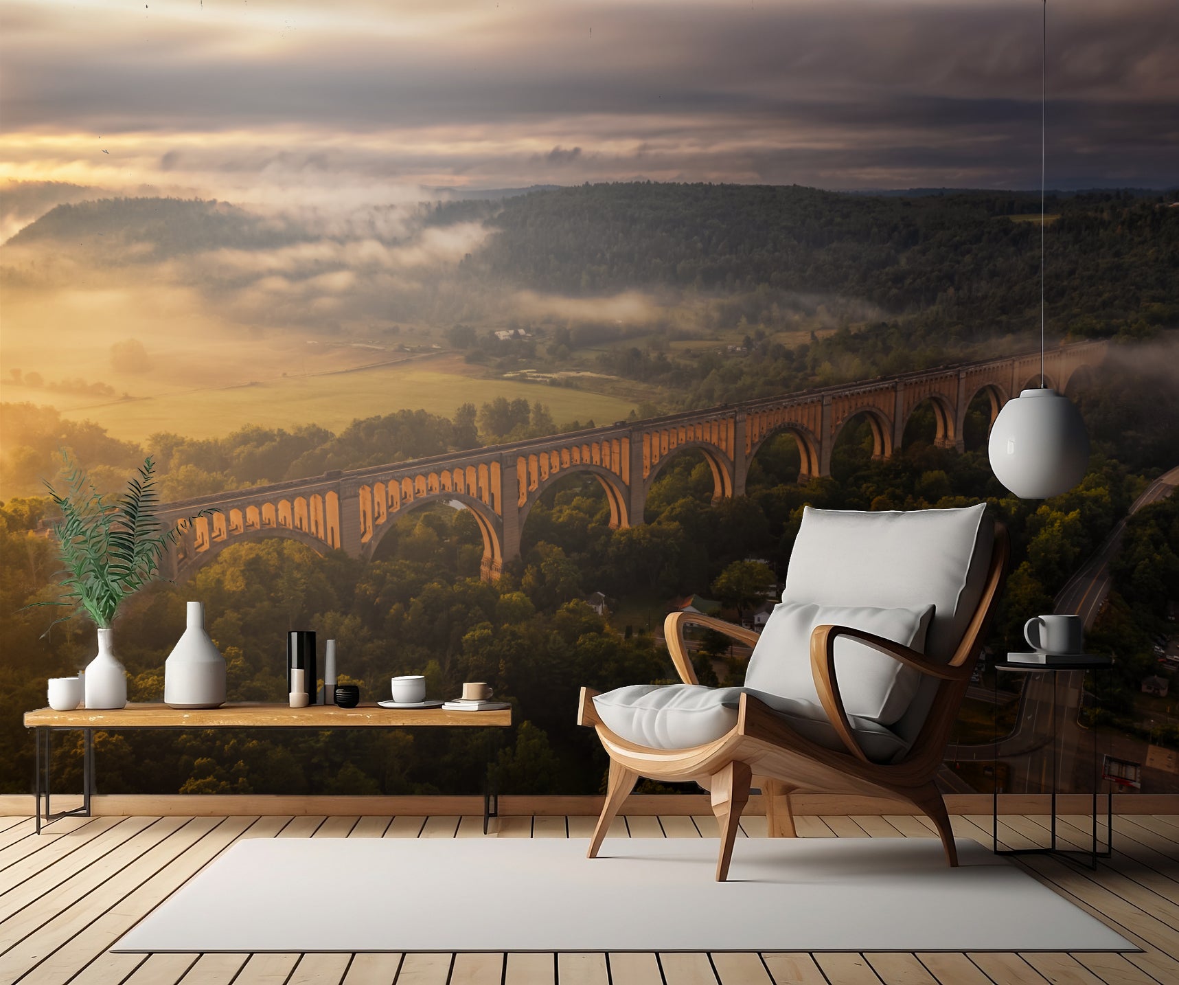 Varje gång du kliver in i rummet kommer denna tapet att transportera dig till en magisk plats där dimman skapar en drömliknande miljö. Du kommer genast att bli uppslukad av den lugna och fridfulla känslan som "Viaduct" utstrålar.