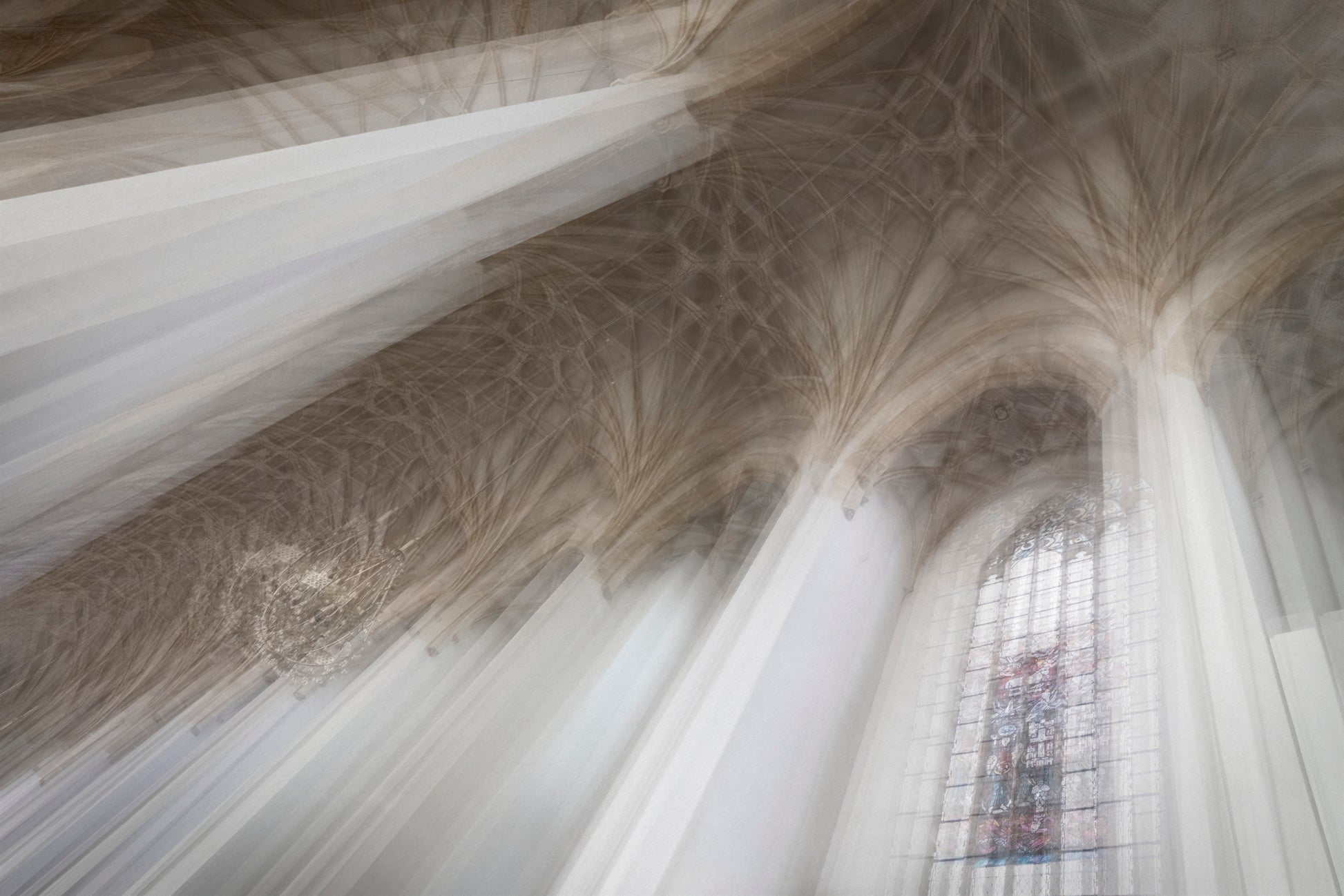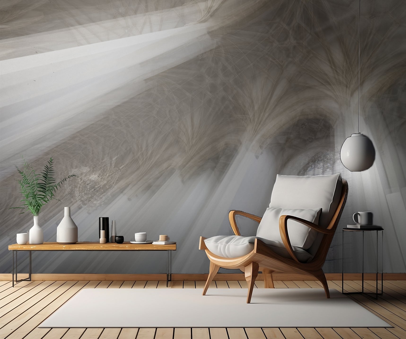 Med dess mångfacetterade motiv av kyrkans interiör, inklusive de imponerande pelarna och taket, ger denna tapet en känsla av andakt och frid. Den måleriska tonen av beige och brunt ger rummet en varm och inbjudande atmosfär.