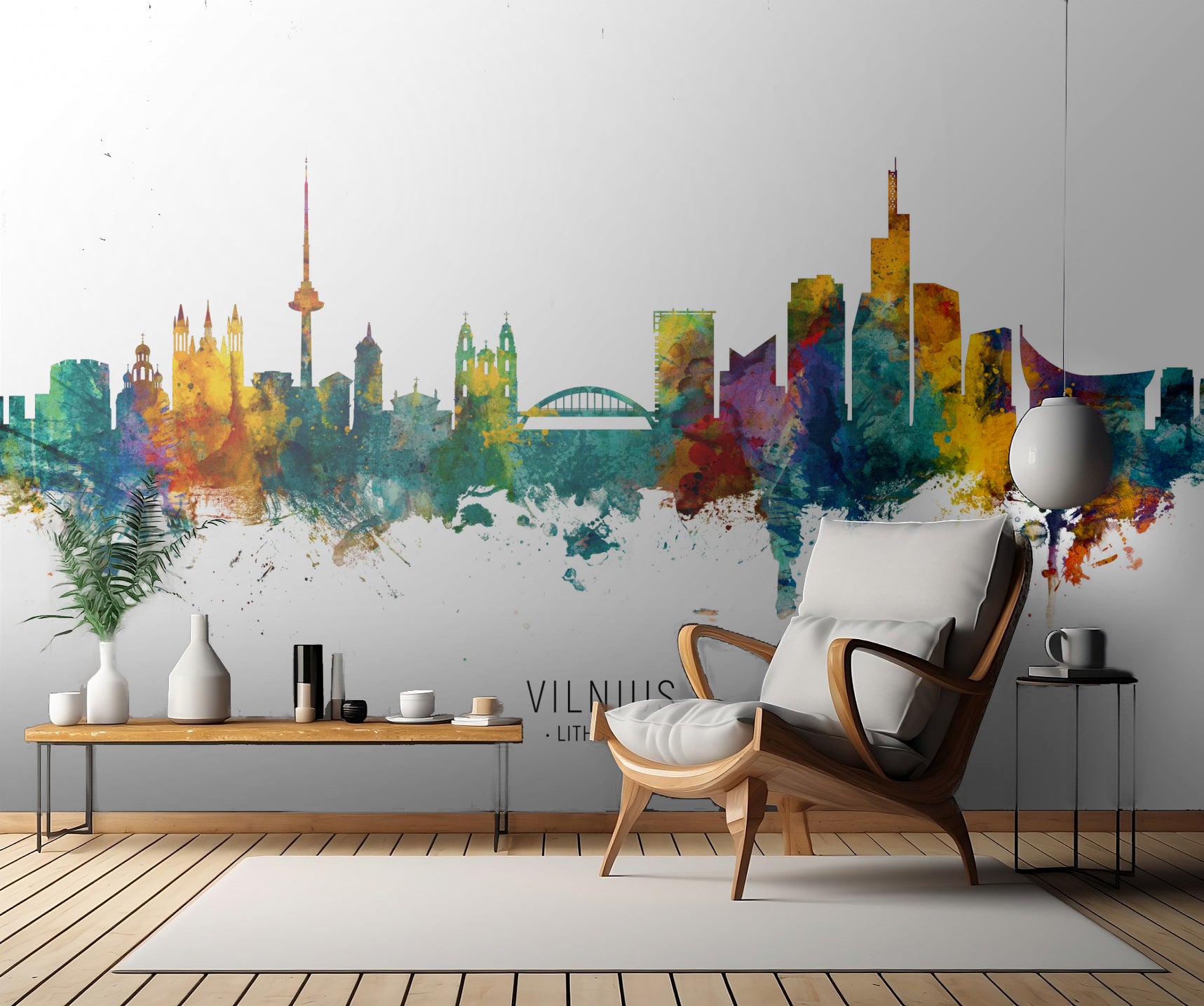 Denna väggmålning är perfekt för alla som älskar städer, arkitektur och konst. Oavsett om du är urbaniteten själv eller bara drömmer om att resa till Vilnius, kommer denna tapet att transportera dig till denna vackra metropol varje gång du tittar på den.