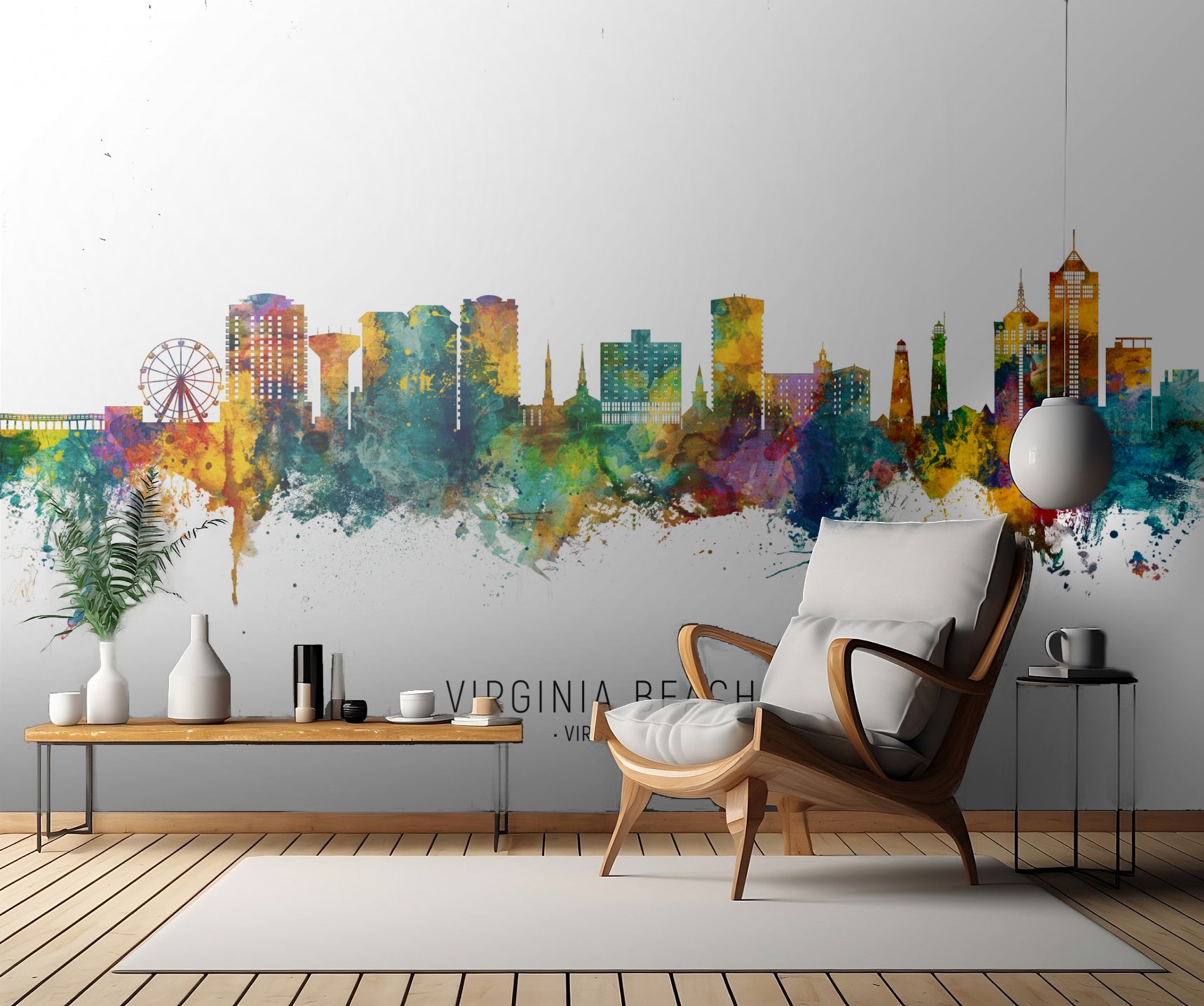 Skapa en fridfull och vacker atmosfär i ditt hem med denna fantastiska väggtapet av Virginia Beachs skyline i Virginia, USA.