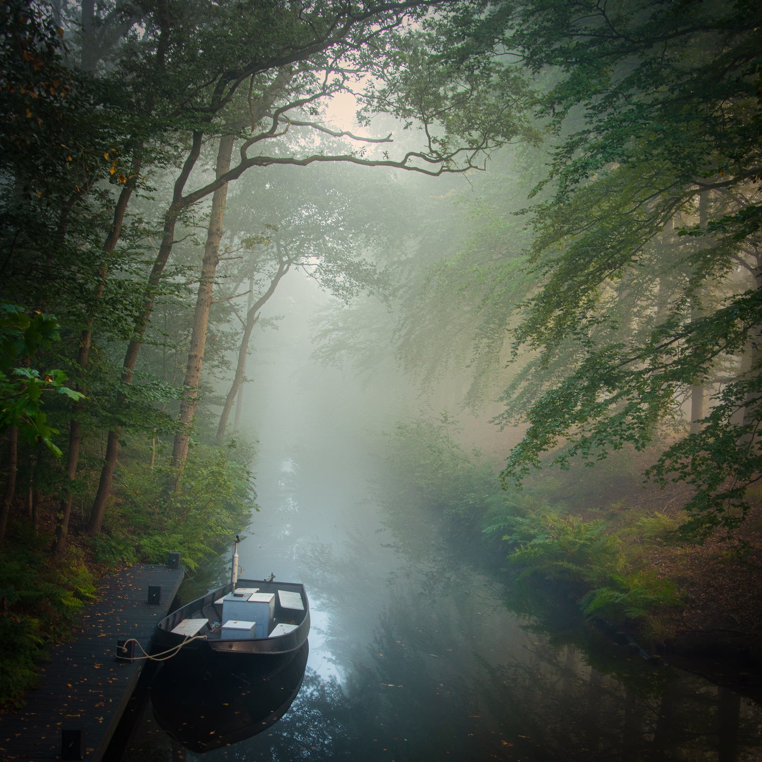 Med motiven av floder, kanaler och vatten ger denna tapet en känsla av att vara djupt försjunken i naturen. Du kan nästan känna lugnet som vattnet utstrålar och blicka ut över dimmiga landskap som låter sinnet vila och reflektera. Båtar som sakta glider fram och försvinner i diset ger en känsla av att vänta på något mystiskt och spännande.