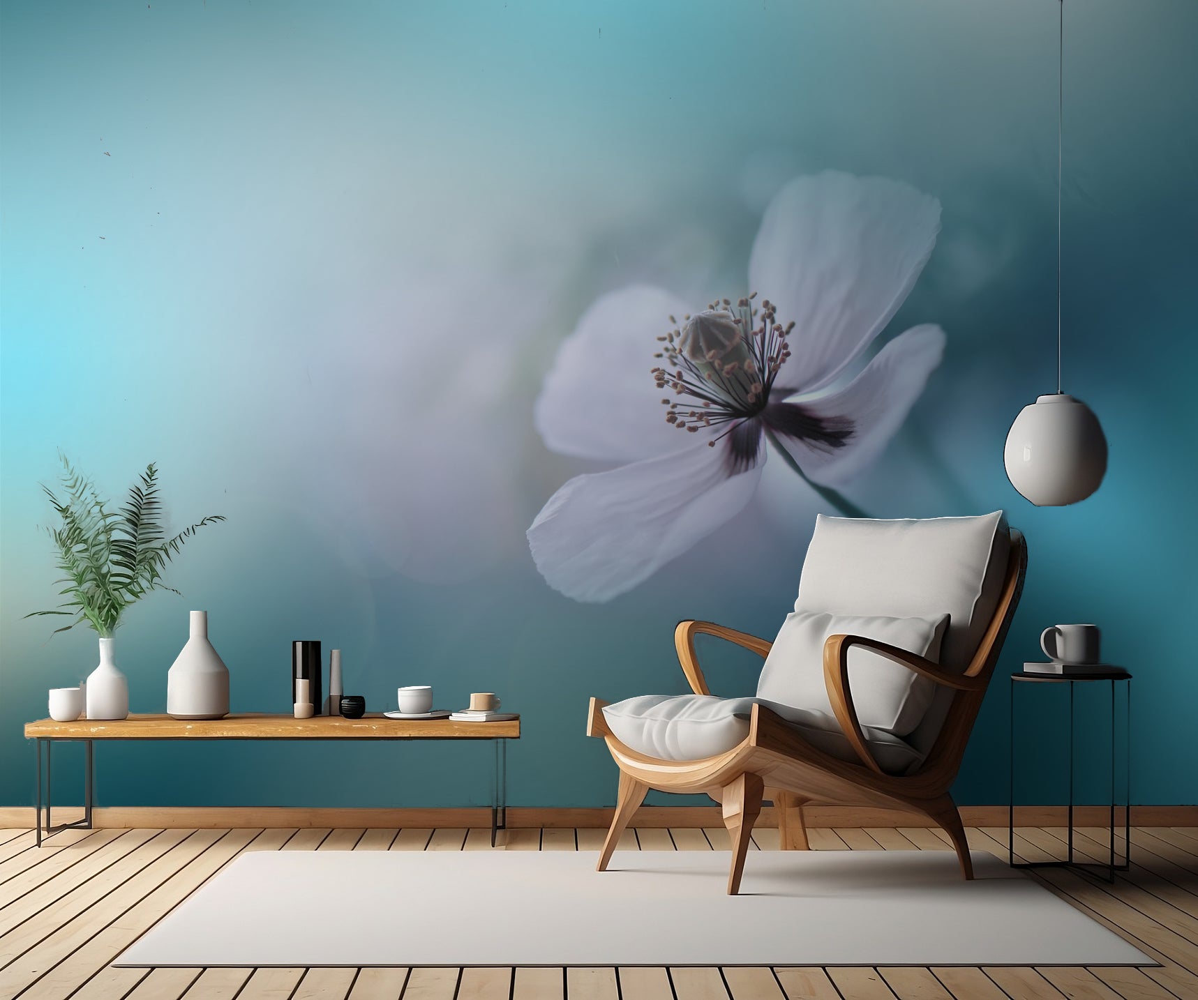 Det som gör denna väggtapet ännu mer speciell är den perfekta balansen mellan färg och form. Juliana Nan har skapat ett verk som andas harmoni och får blommorna att dansa i en konstnärligt sammanflätad rytm. Varje detalj är noga uttänkt och skapar en atmosfär av mjukhet och frihet.