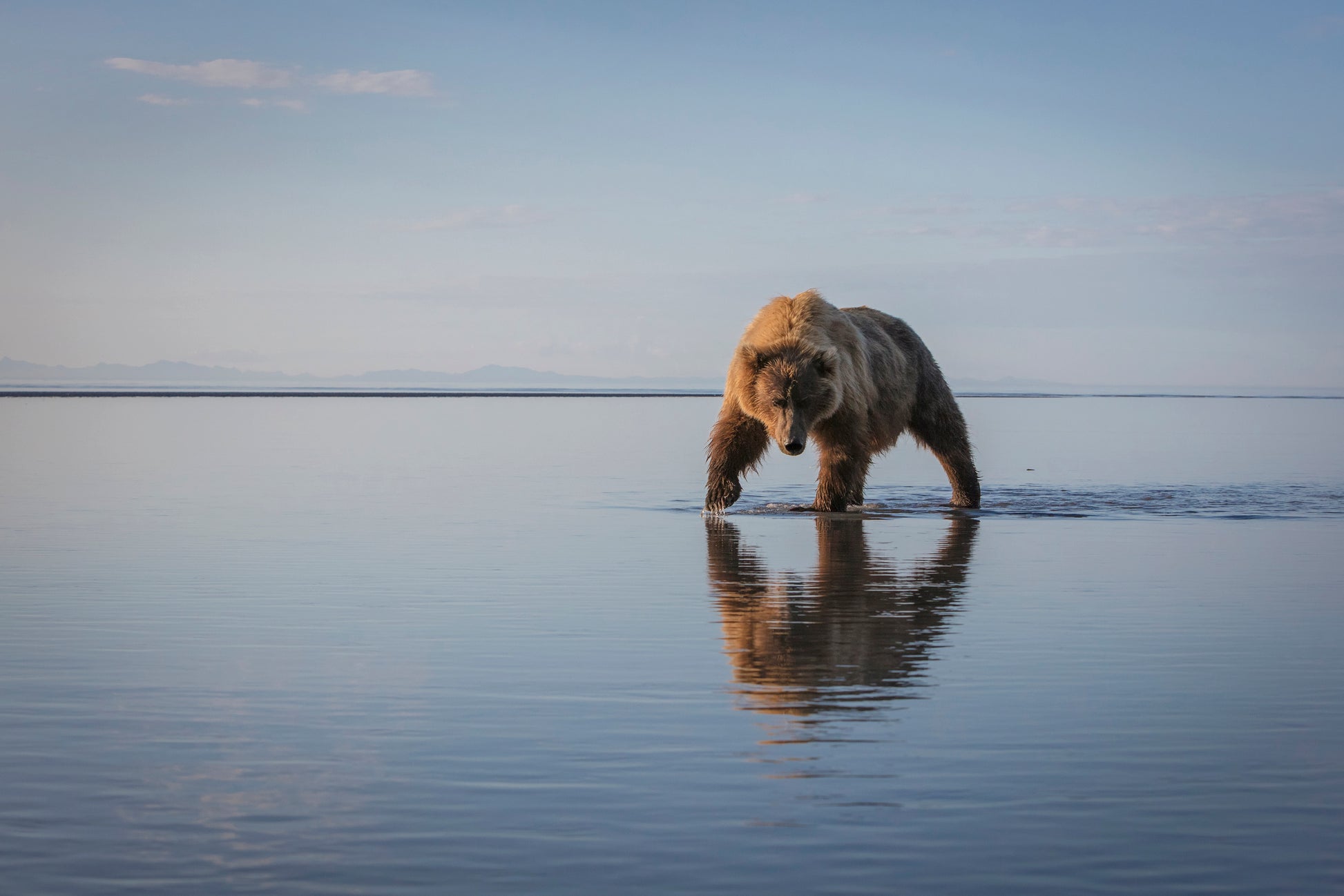 Bilden visar en majestätisk brunbjörn i sin naturliga miljö. Med björnen som huvudfokus skapar tapeten en känsla av närvaro och äkthet. Vare sig du är intresserad av jakt eller bara älskar djur och vilda landskap, får du en nära och personlig upplevelse med denna tapet.