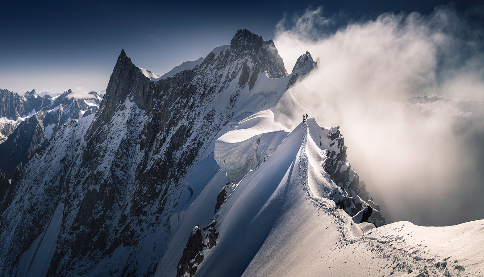 Ge ditt rum en känsla av äventyr och upptäckt med den fantastiska väggtapeten "Walking on the line". Skapad av den talangfulla konstnären Karol Nienartowicz, tar denna tapet dig med på en vandring längs en dramatisk bergsrygg med imponerande utsikt över det franska alplandskapet.