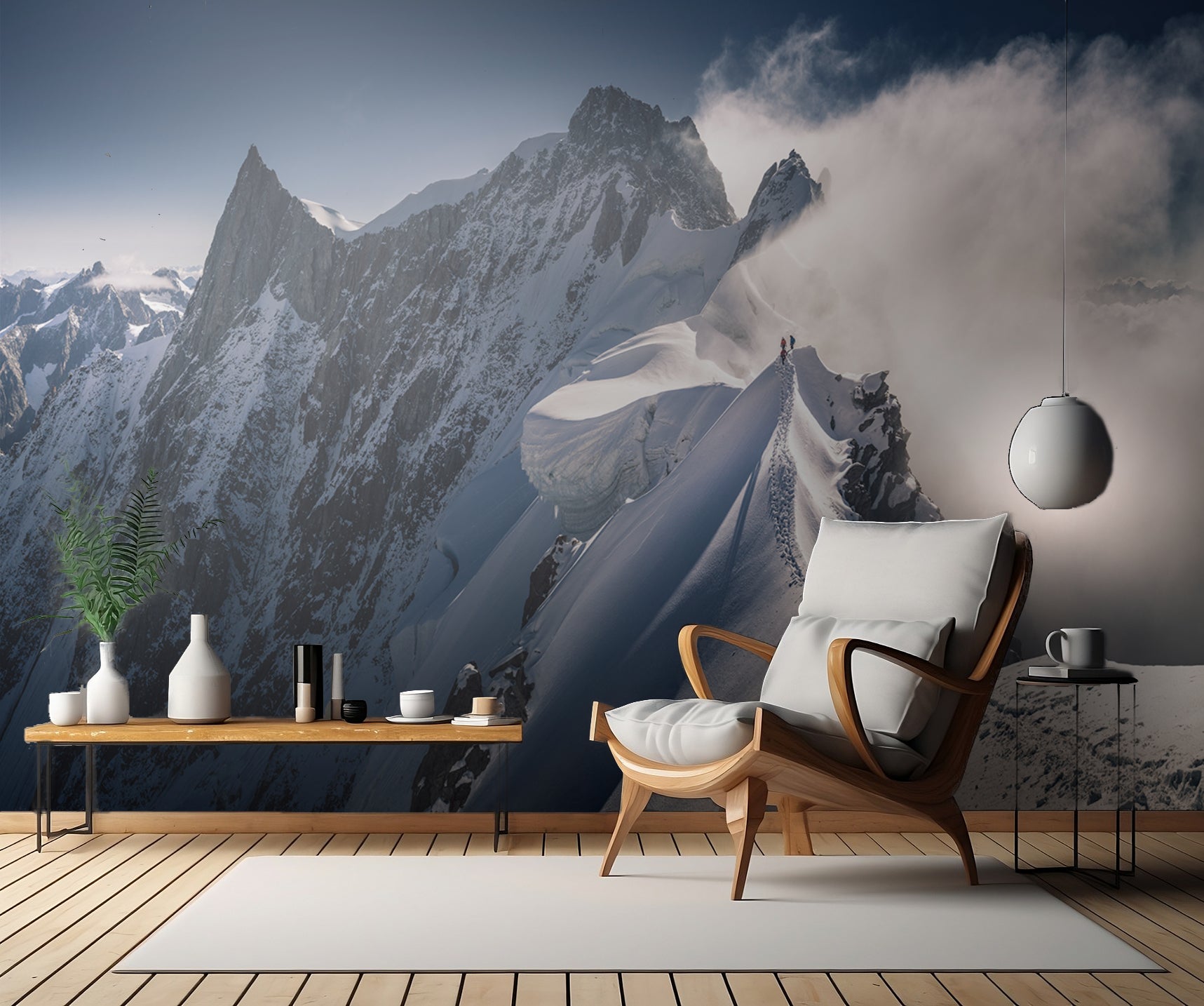 Med sina vackra kontraster och detaljer inspirerade av verkliga bergslandskap, ger "Walking on the line" dig möjligheten att skapa en unik och dramatisk atmosfär i ditt hem. Välj denna tapet om du vill skapa ett rum som för tankarna till äventyrliga vandringar och hisnande vyer över mäktiga bergstoppar.Utforska världen av äventyr med "Walking on the line" - tapeten som tar dig med på en resa genom höga berg och dramatiska landskap.