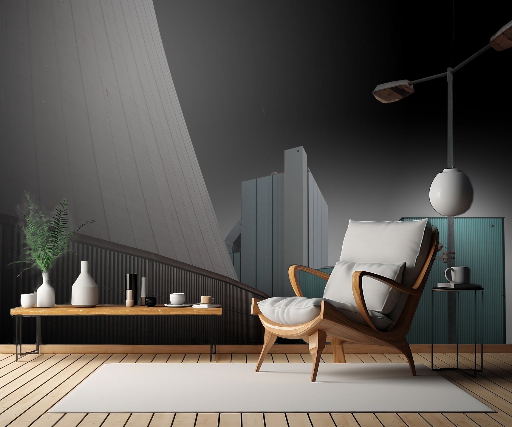 Låt dig inspireras av den industriella känslan och stadslandskapet som denna tapet förmedlar. De stiliserade byggnaderna och lamporna skapar en unik atmosfär och ger ditt rum en modern touch.
