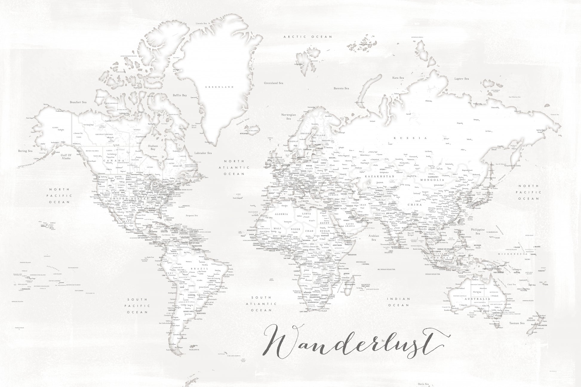 Ge ditt hem en touch av äventyr med denna otroliga väggtapet "Wanderlust, detaljerad världskarta med städer, Maeli white". Utforska världen med stil och skapa en atmosfär av upptäcktsfärd och wanderlust i ditt hem.