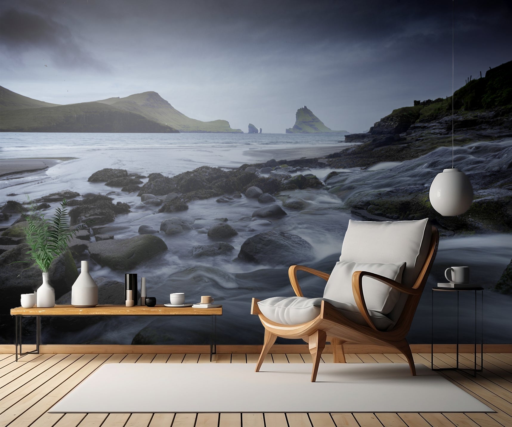 Med "Waterfalls" väggtapet får du möjligheten att skapa en atmosfär av stillhet och harmoni i vilket rum som helst. Landa i en fridfull oas i ditt eget hem och njut av den vackra synen av vatten som porlar fram längs flodens steniga botten. Med varje blick på denna konstverk kommer du att känna dig som om du befinner dig vid kusten, insvept i skönheten och lugnet som havet erbjuder.