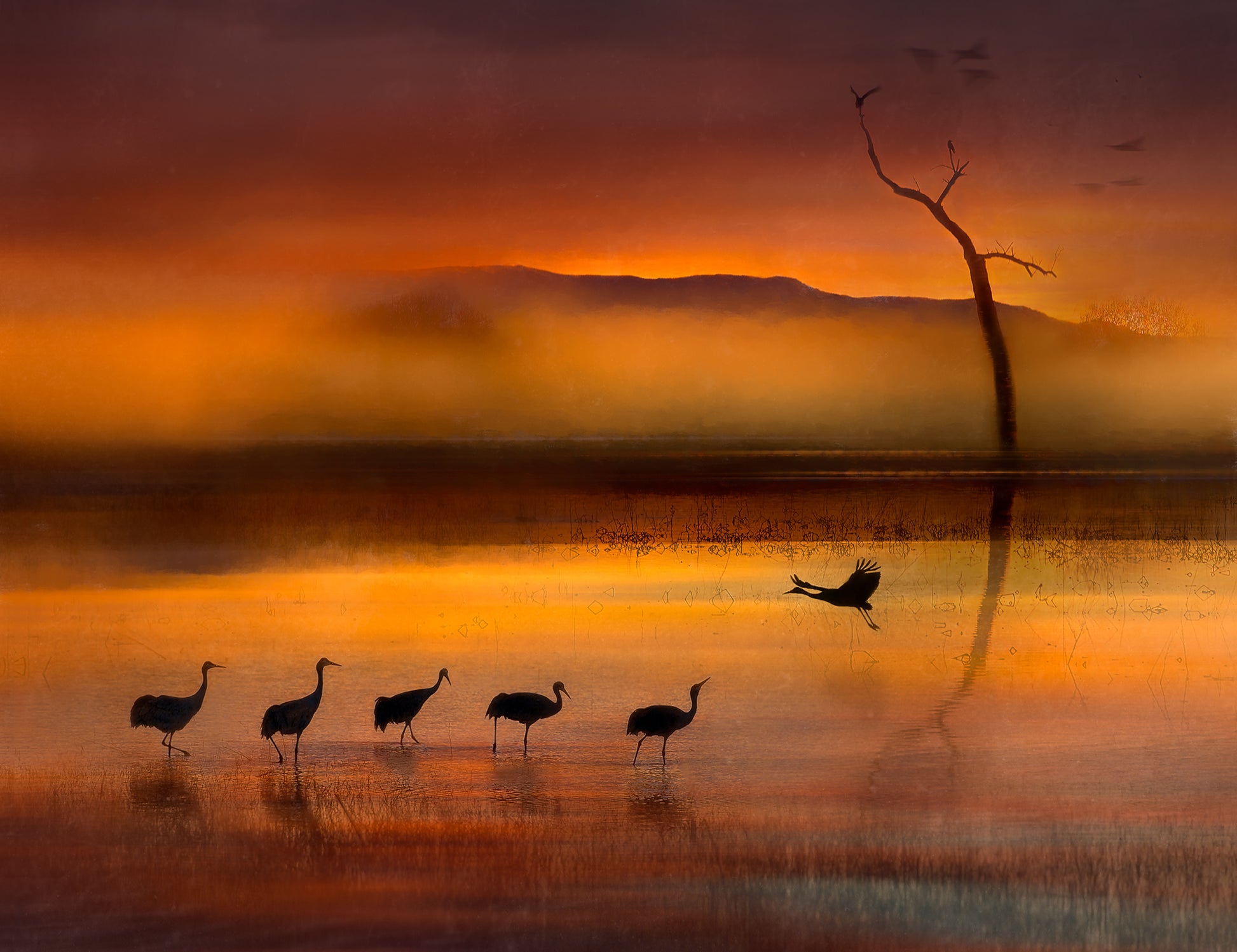 Tranorna är inte ensamma – de följs av andra vilda djur och fåglar som skapar en fantastisk mångfald. De har alla funnit sin fristad i den vackra naturen i Bosque del Apache i San Antonio, New Mexico, USA. Du kan nästan känna atmosfären och lyssna till de vilda ljuden i ditt eget hem.