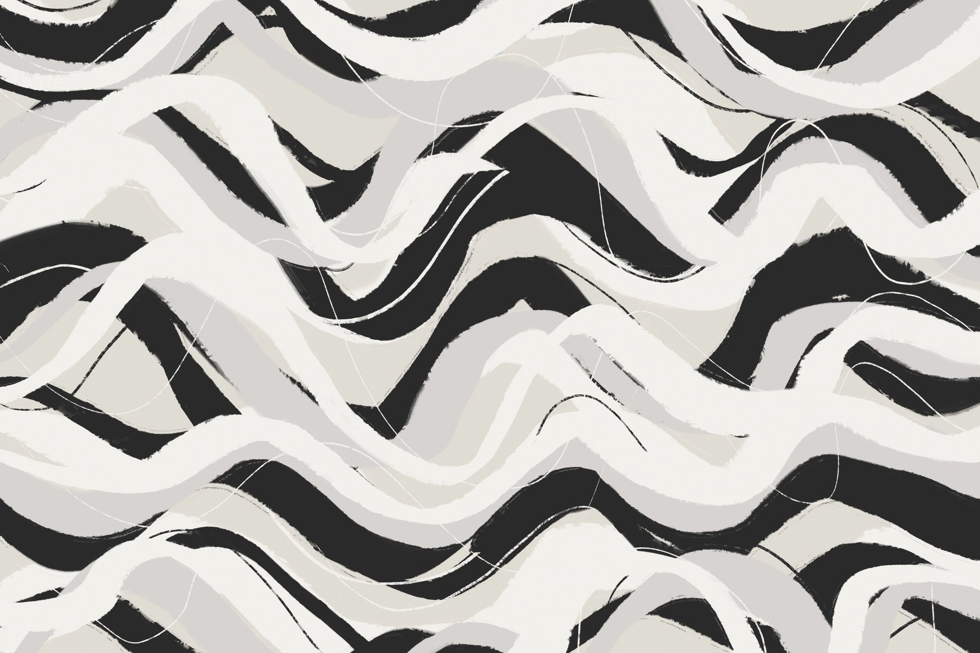 Med en bakgrund i grått och beige skapar tapeten en fin kontrast i rummet, samtidigt som den ger en känsla av rörelse och liv med sina vågmönster. Designen ger ett varierande spel av ytor och texturer, vilket gör din vägg till ett riktigt konstverk.