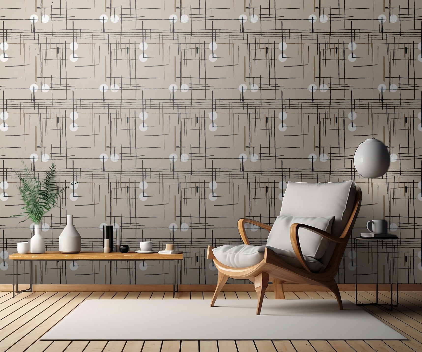 Det abstrakta mönstret på tapeten ger rummet en modern touch samtidigt som det ger en känsla av rymd och dimension. De fina linjerna och prickarna skapar en intressant visuell effekt som kommer att få dina gäster att imponeras.