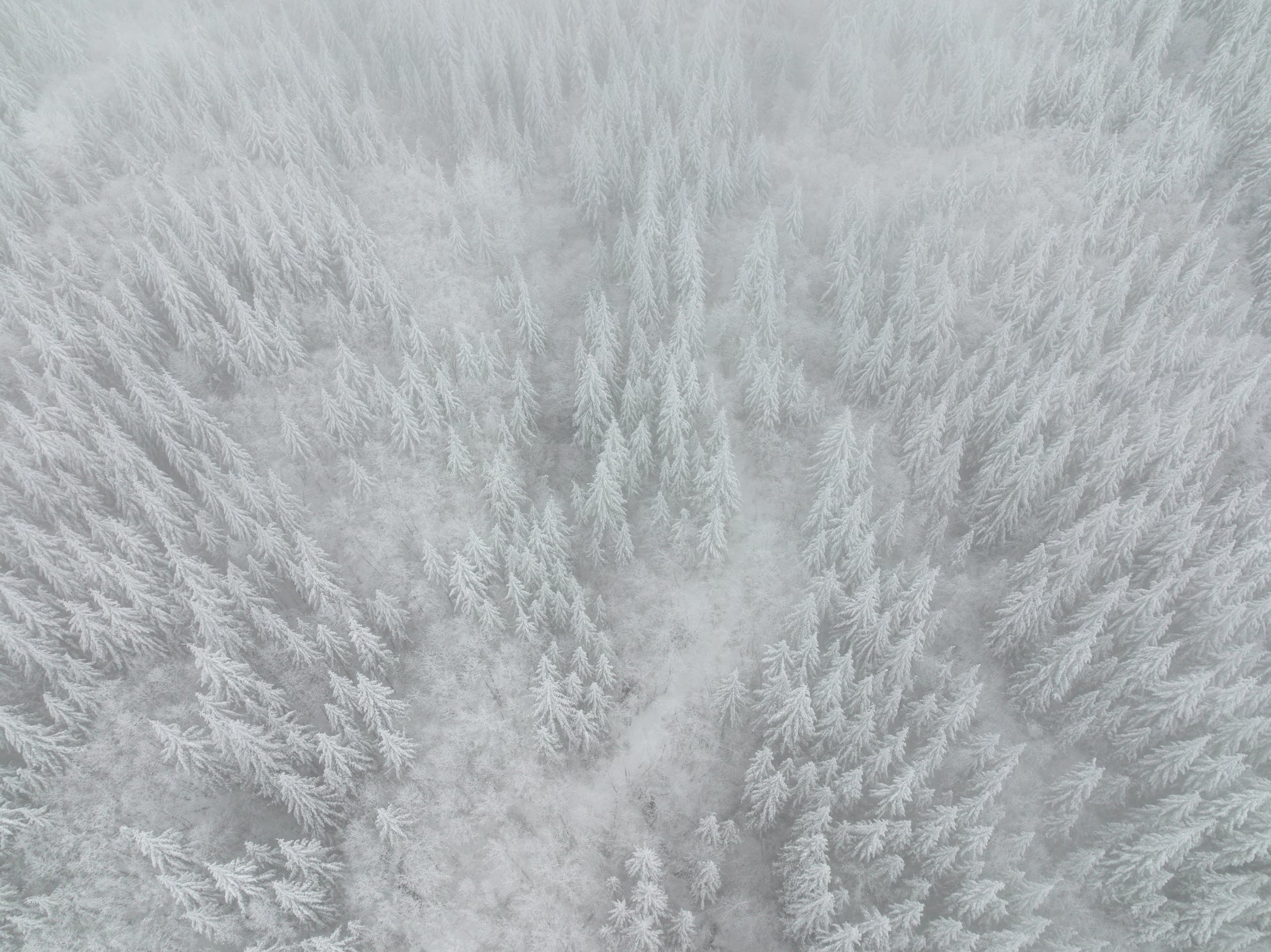 Dröm dig bort till en snötäckt skog med träd som sträcker sig mot himlen. "White out" ger dig möjligheten att skapa din egen snöig drömvärld där du kan koppla av och njuta av lugnet. Med hjälp av drönarfoto får du en unik och vacker utsikt över skogen, vilket ger rummet en extra dimension av djup och natur.