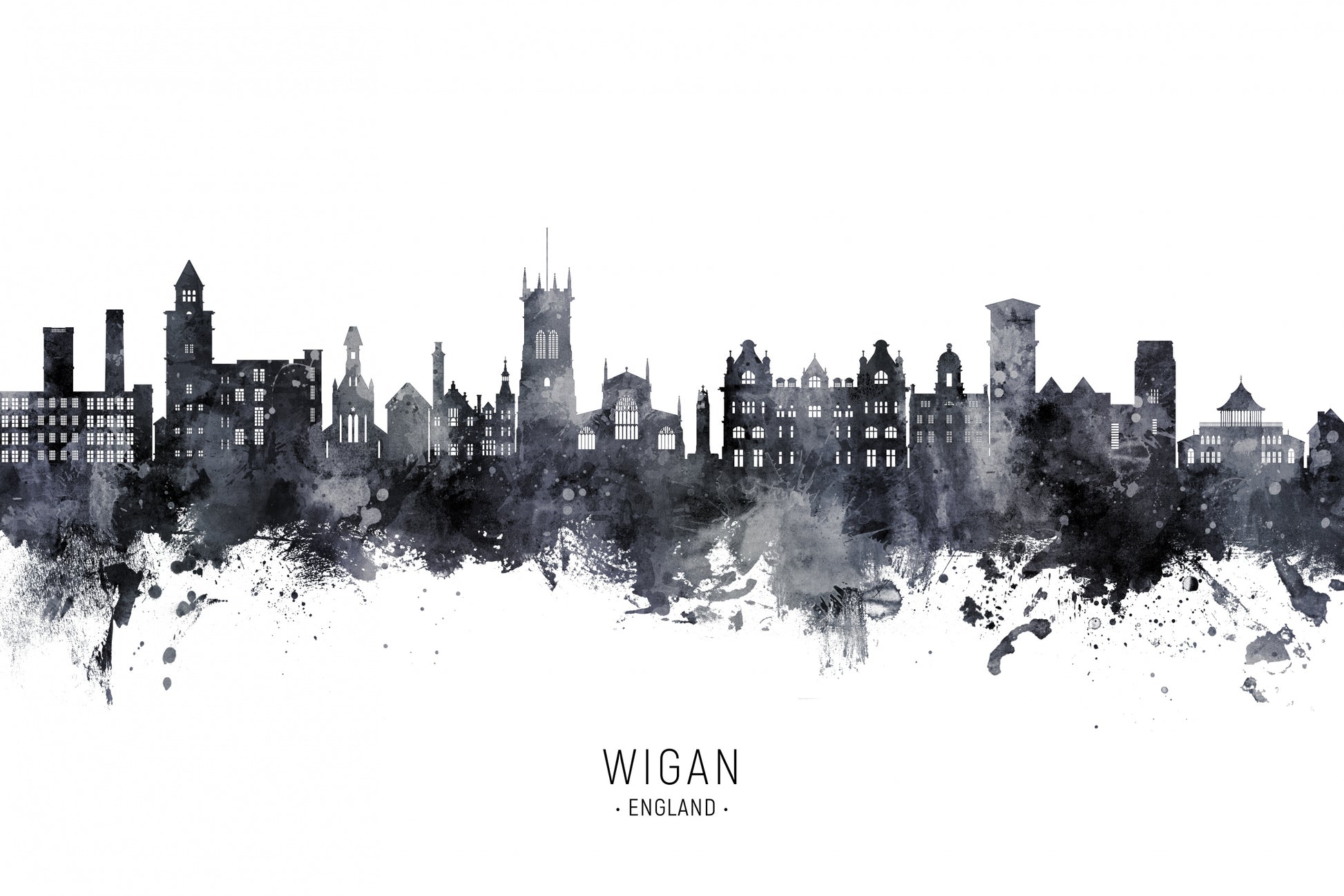 Ta med en bit av Storbritannien in i ditt rum och njut av denna unika konstverksskapelse. Skapa en modern och trendig atmosfär med "Wigan England Skyline" på din vägg idag.
