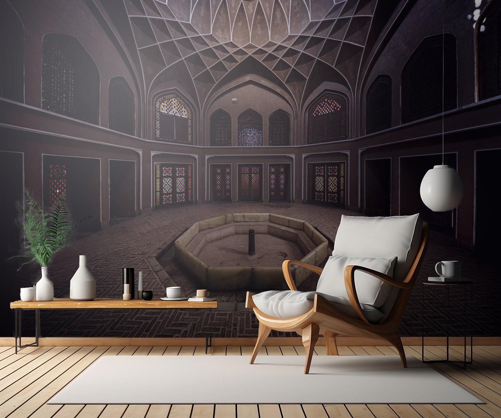 Med sin sinnesbevekande interiör förmedlar "Wind tower of Yazd" en stark känsla av helighet och andlighet. De detaljerade mosaikerna i bruna nyanser ger en varm och inbjudande atmosfär till ditt rum. Oavsett om du är religiös eller enbart uppskattar vacker arkitektur, kommer denna tapet definitivt att bli en samtalspunkt i ditt hem.