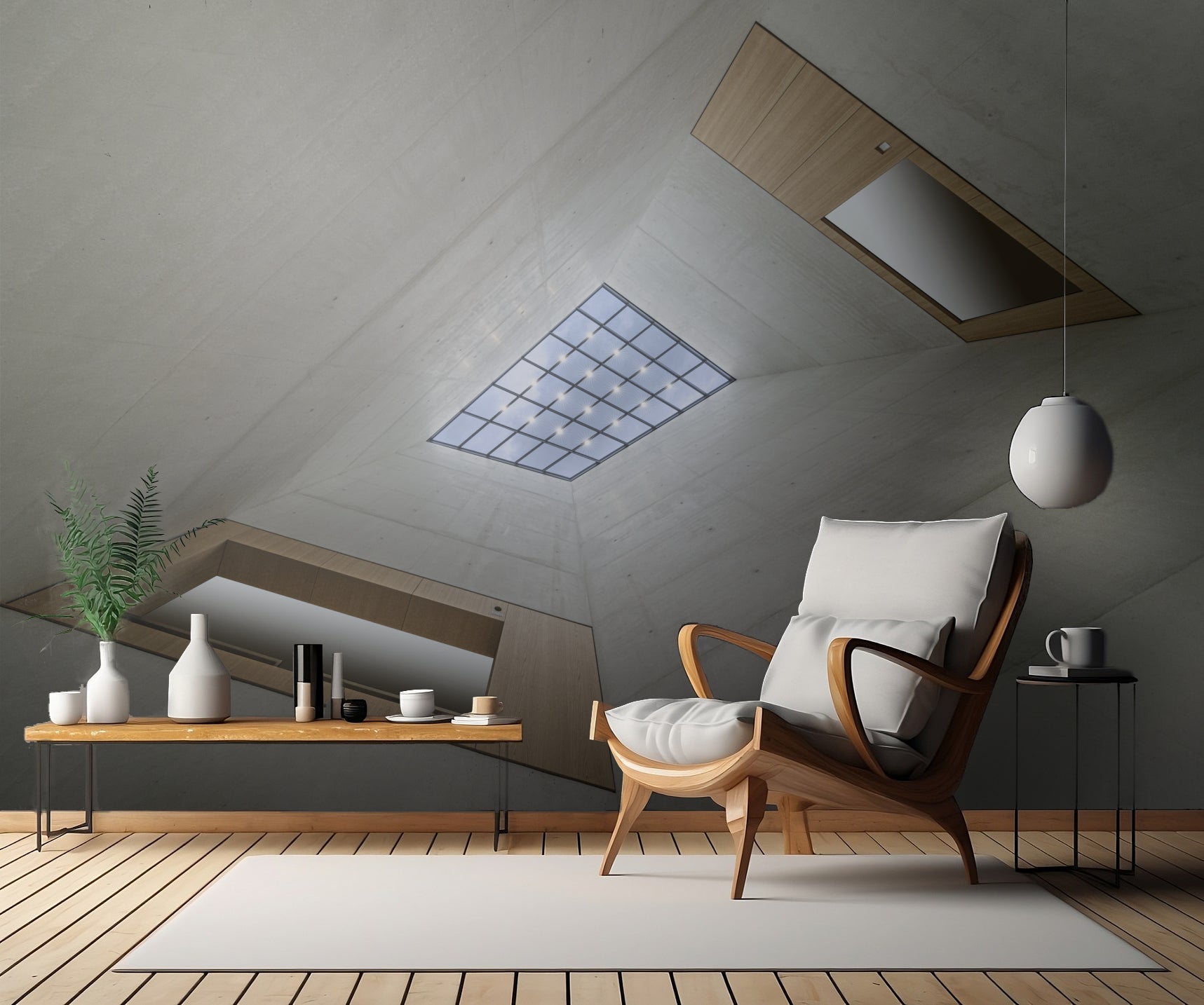 Det abstrakta mönstret på tapeten ger en känsla av rymd och utvidgar perspektivet. Genom att titta uppåt ger "Windows" tapeten en känsla av att befinna sig i en annan dimension.
