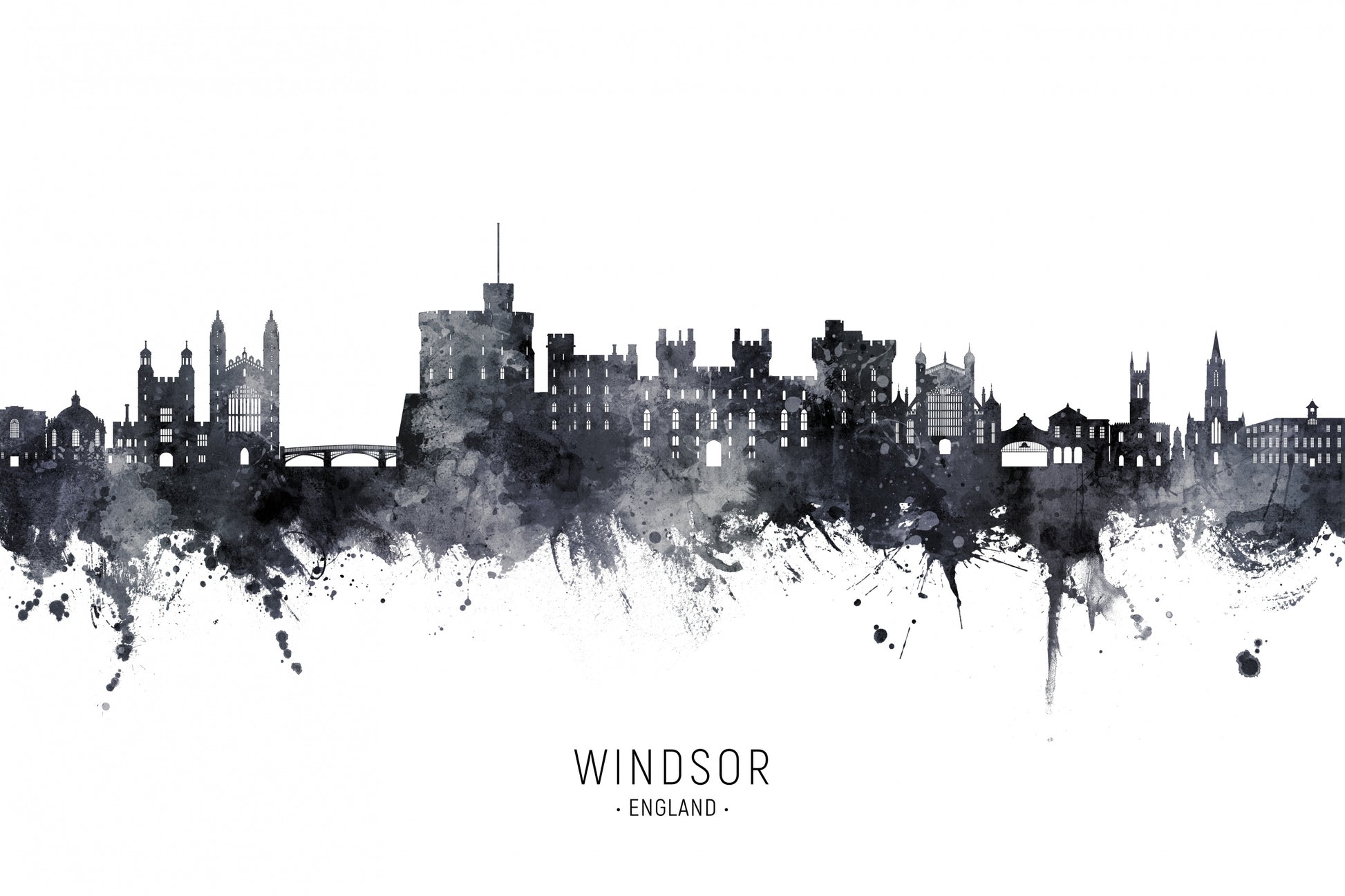 Förför rummet med en vacker och detaljerad väggtapet av Windsor England Skyline, skapad av konstnären Michael Tompsett. Denna målade vattenfärgsbild fångar stadens ikoniska silhuett på ett unikt och konstnärligt sätt.