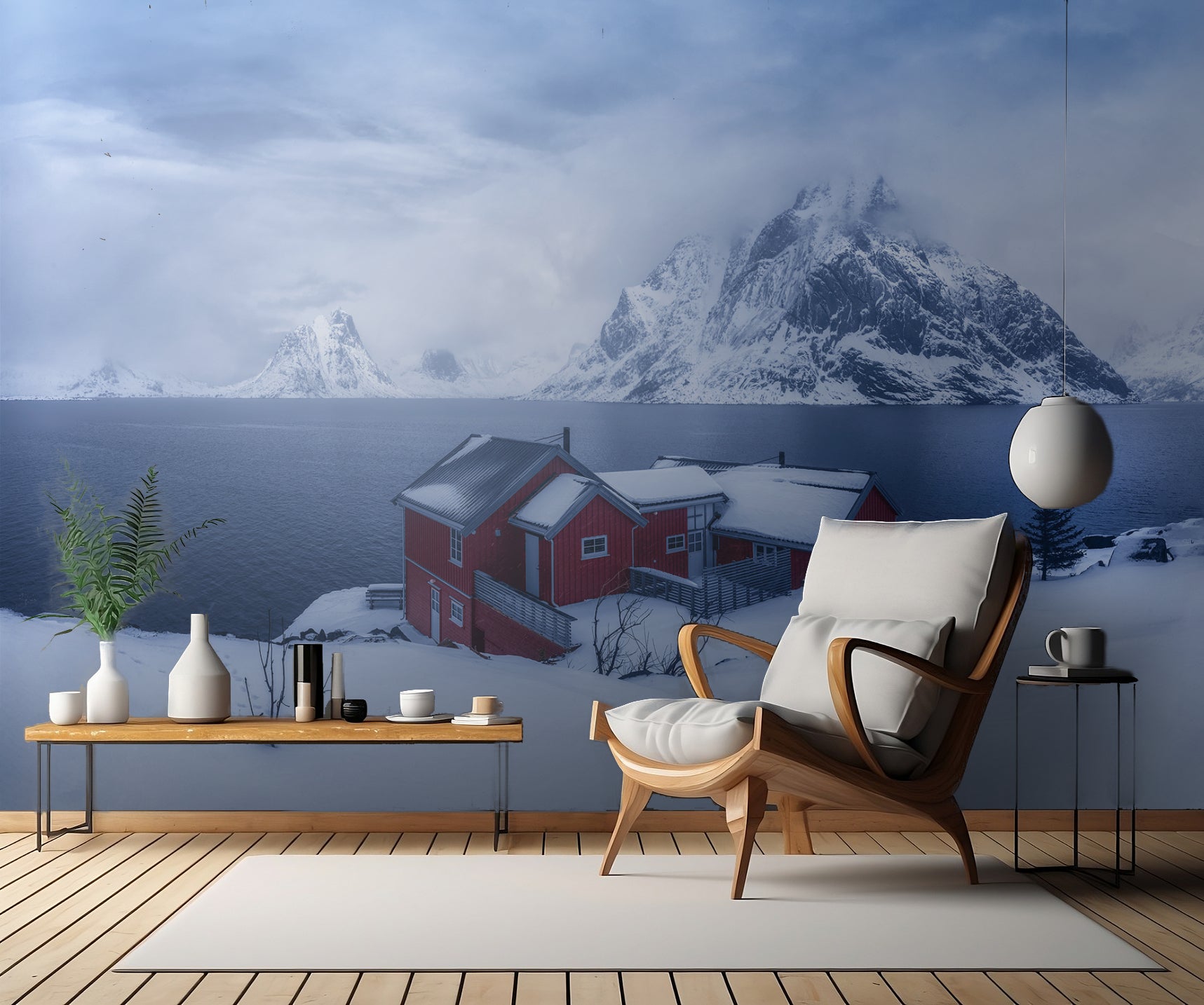 Dröm dig bort till en värld täckt av frost och snö, där de majestätiska bergen möter det isblåa havet. Varenda detalj på tapeten är noggrant utformad för att skapa en känsla av lugn och ro.