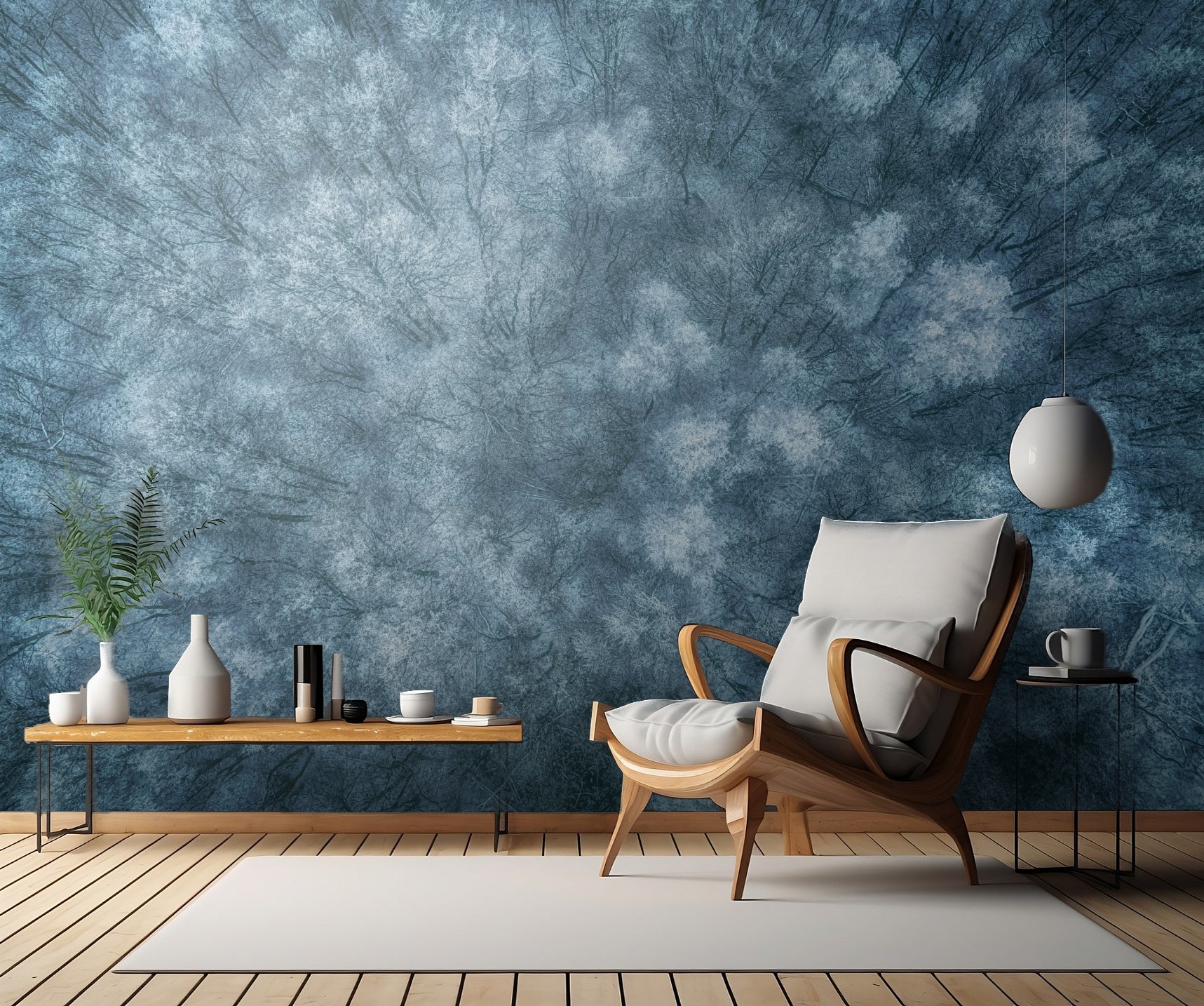 Den blåa färgskalan skapar en kylig atmosfär och för tankarna till en gnistrande vinterdag. Den abstrakta mönstret av träden ger en modern touch och fungerar perfekt som en bakgrund för ditt hem eller arbetsplats.