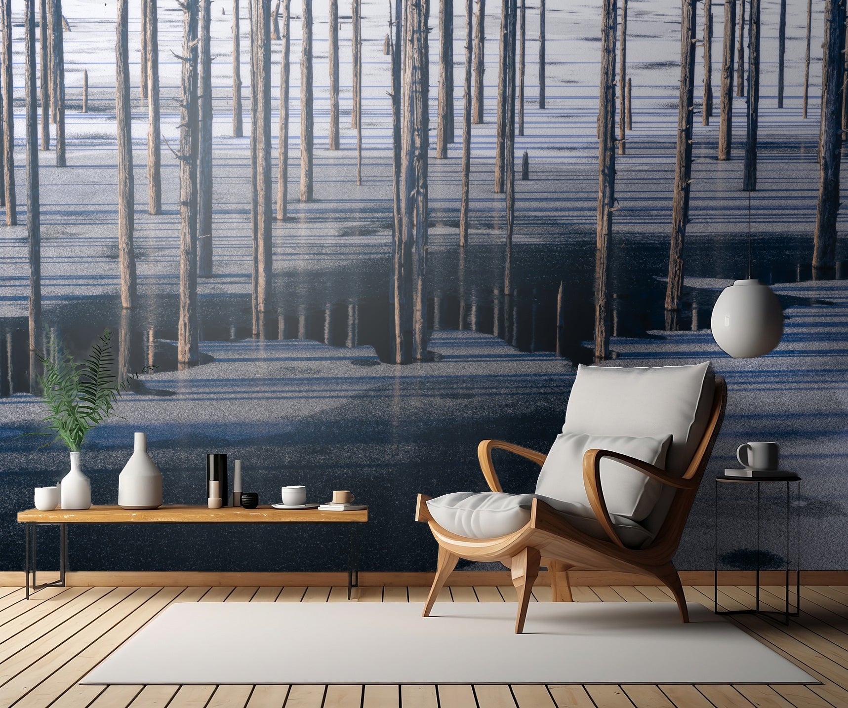 Det detaljerade mönstret av trädstammar och snöiga landskap ger en känsla av stillhet och lugn. Varenda korn i tapeten är noggrant utformat för att skapa en realistisk bild av vinterns skönhet. Med en fokusförhållande på 15:1 ger "Winter lake" en imponerande och imponerande syn på naturen.