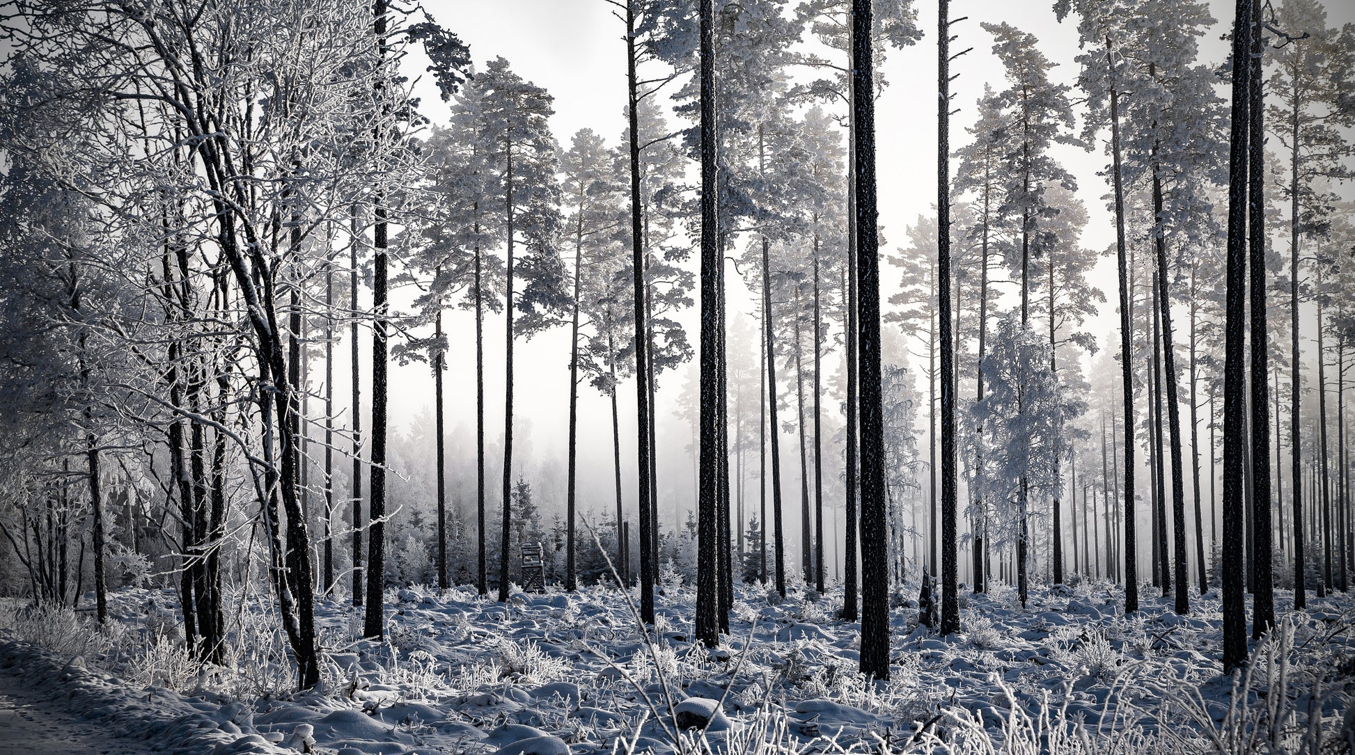 Denna tapet ger inte bara en pittoresk skogsmiljö, den skapar också en känsla av vidöppna landskap. Låt rummet förvandlas till ett vinterlandskap där snön ligger som ett vitt täcke och trädstammarna skymtar genom dimman. Detta är en perfekt tapet för den som vill kombinera elegans med en djup inblick i naturens skatter.