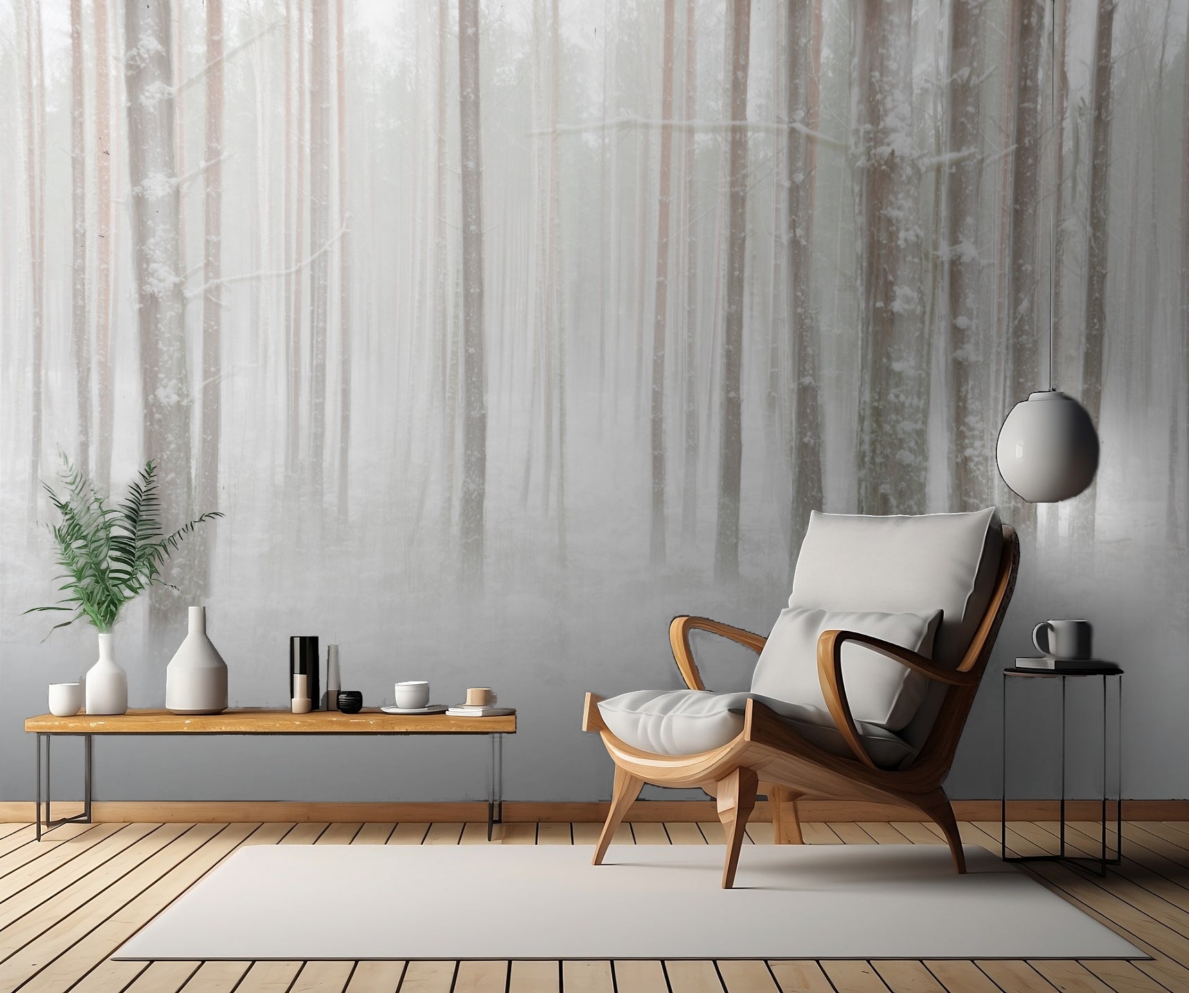 Med en blurrig och målade effekt skapar tapeten en lugn och fridfull atmosfär i rummet, perfekt för avkoppling och meditation. Långa exponeringar ger en drömlik kvalitet till landskapet och får dig att känna dig som om du vandrar genom en snöig skog i Sverige.