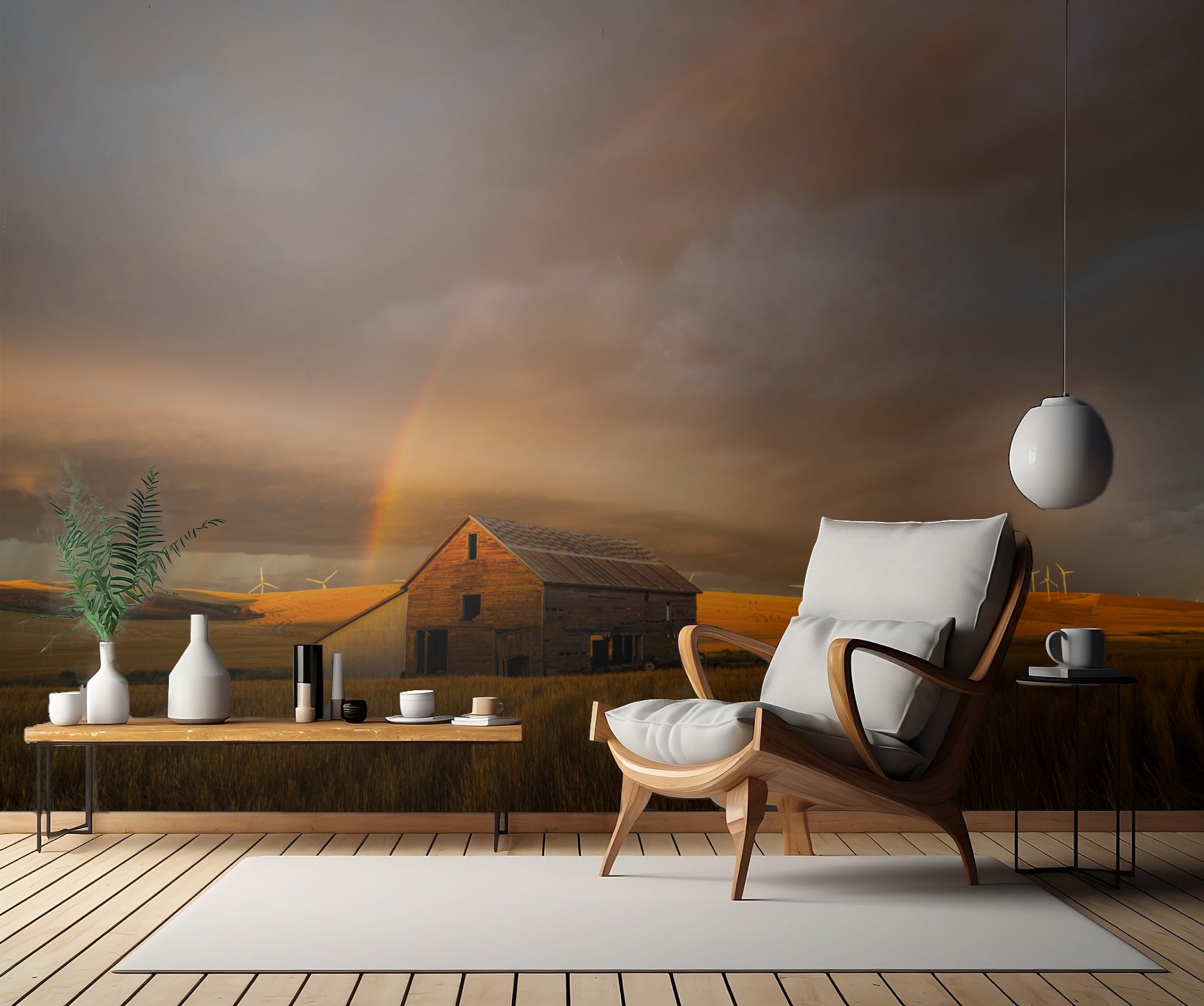 Skapa en fridfull atmosfär i ditt hem med denna underbara tapet som för tankarna till den amerikanska landsbygden. Skapa en oas av harmoni och skönhet med "Witness of the Rainbow".