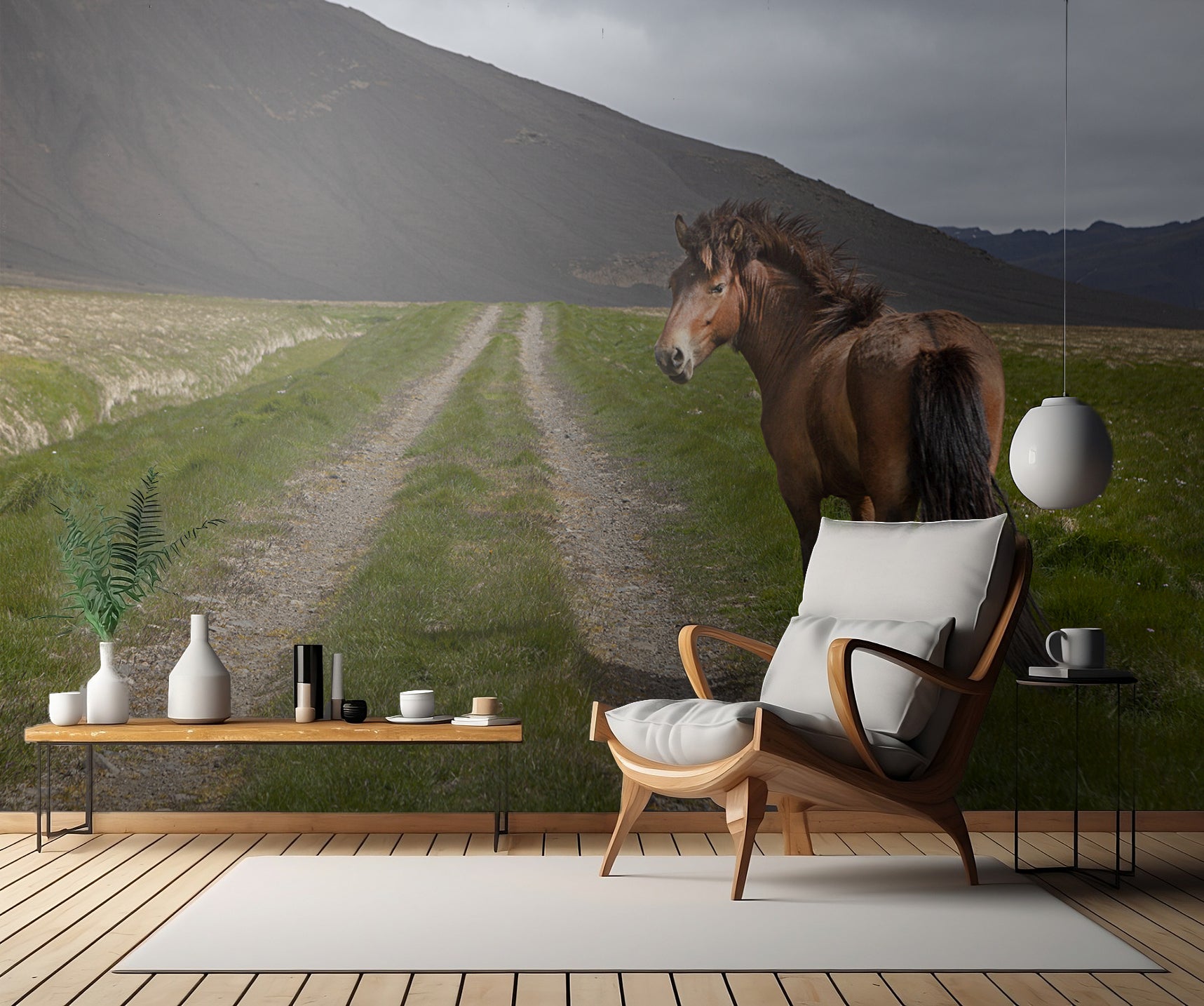 Med motiv av hästar och det dramatiska isländska landskapet är denna tapet perfekt för alla hästälskare eller för de som längtar efter en stunds frid och ro i naturen. Ge ditt rum en unik touch med "You can Pass By" och låt dess skönhet och charm föra in lite av Islands magi i ditt hem.