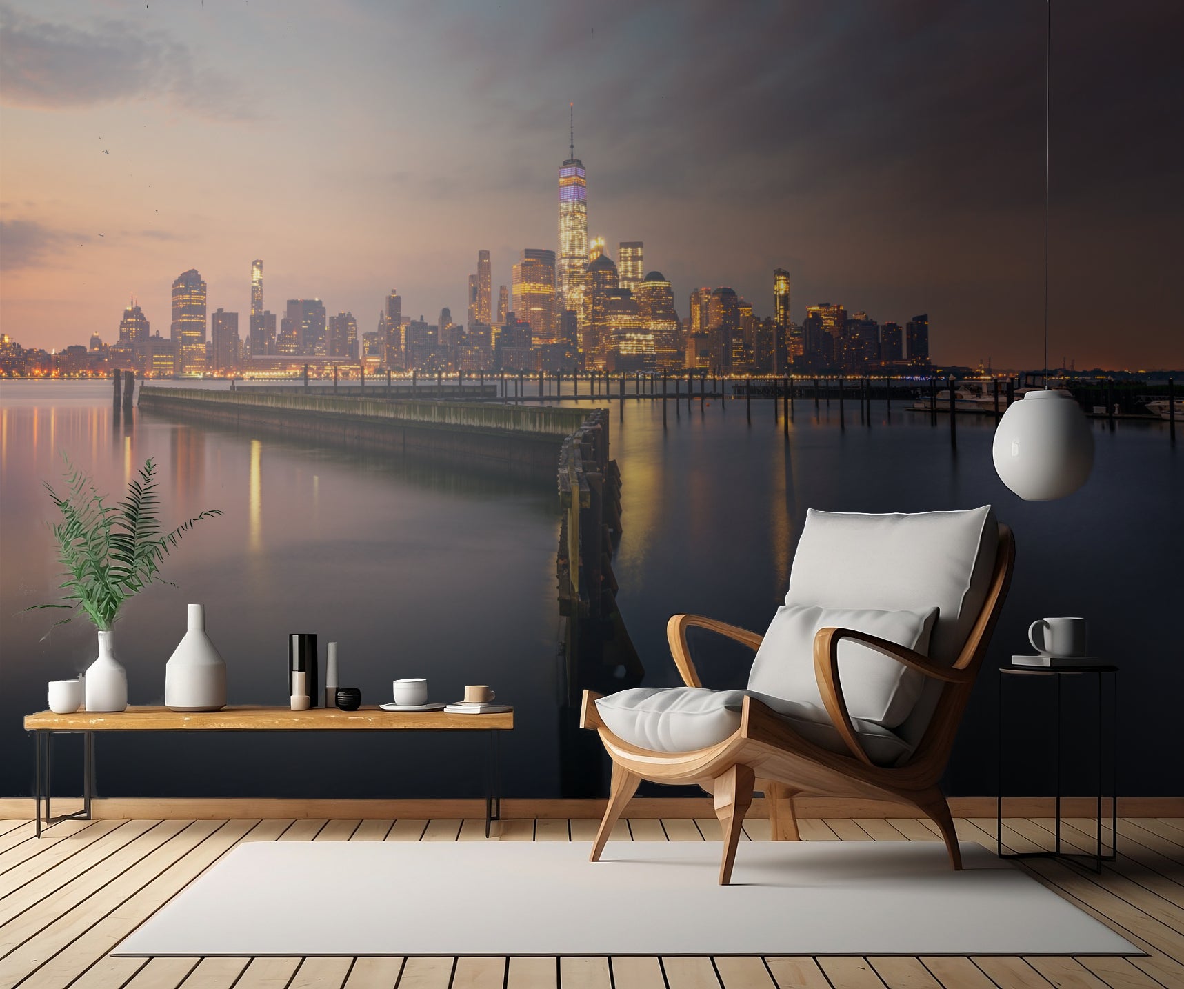 "HORIZON", "DUSK", "EVENING", "TWILIGHT", "WATER", "LANDSCAPE", "SUNSET", "SKY", "NIGHT", "RIVER", "STREAM", "CREEK", "CLOUD", "CLOUDS", "REFLECTION", "SKYLINE", "CITY", "CITYSCAPE", "URBAN", "BUILDING" - alla dessa element är sammanvävda för att skapa en oemotståndlig tapet som passar perfekt i alla moderna hem. Med en bildratios 1:4 kommer tapeten verkligen att bli en iögonfallande prydnad i vilket rum den än placeras. Ge ditt hem en touch av konst och stil med "Z" väggtapet.